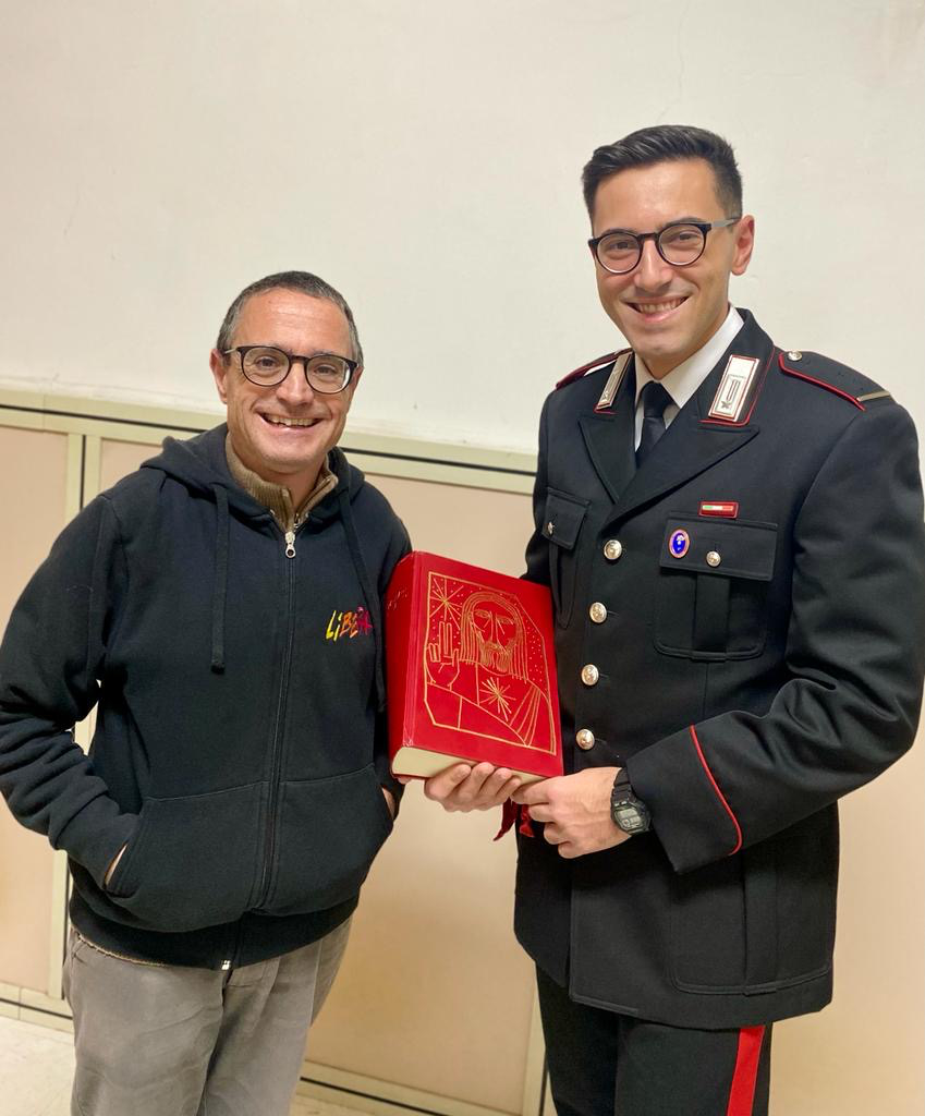 I carabinieri approfondiscono il controllo e l’uomo viene perquisito. Nello zaino un messale. Il 45enne minaccia e spinge i Carabinieri che con non poche difficoltà riescono a portarlo in caserma. Dagli accertamenti il messale trovato addosso all’uomo è proprio quello rubato.
