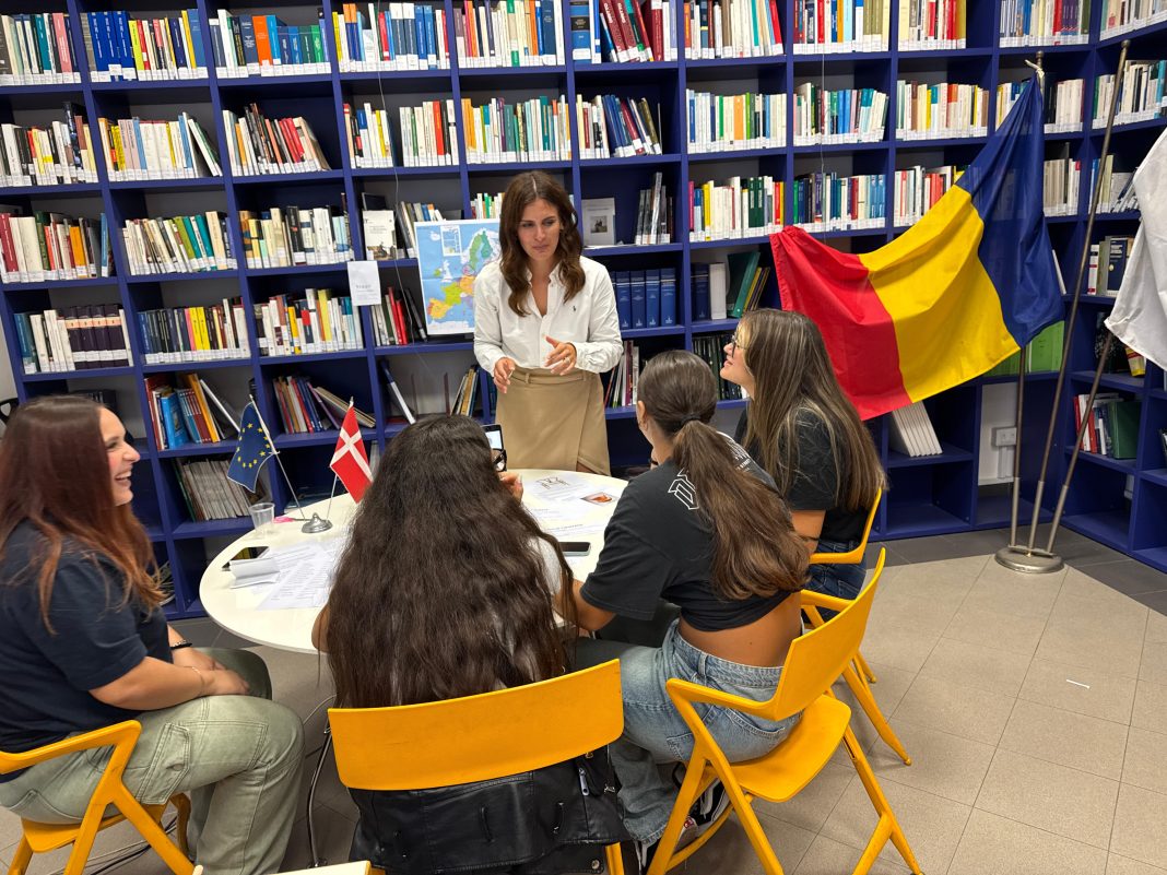 EUROPE DIRECT del Comune di Napoli, che ha spiegato il senso dell’iniziativa di quest’anno, che pone l’accento sul tema della pace. Infatti “Lingue per la pace” è il motto adottato per l’edizione di quest’anno dal Consiglio d’Europa, per sottolineare quanto la diversità linguistica e l’educazione linguistica possano svolgere un ruolo chiave nella promozione di una cultura di pace, convivenza e democrazia. La giornata è successivamente entrata nel vivo con la tenuta di vari “tavoli di conversazione” in differenti lingue europee, il tutto grazie al supporto di volontarie del Corpo Europeo di Solidarietà e della tirocinante Erasmus+ dello Europe Direct. I presenti sono stati invitati a dividersi in gruppi ristretti per provare a praticare la lingua con un’attività di circa un’ora, acquisendo i primi rudimenti e ricevendo consigli e risorse utili per un successivo approfondimento. I tavoli sono stati tenuti dalle volontarie Tinatin Pichkhadze (per la lingua georgiana), Ilona Snieda e Wiktoria Zakrocka (tavolo in lingua polacca), Victoria Swart (tavolo in lingua danese), Celia Rodríguez-Bermejo (lingua spagnola) e dalla tirocinante Europe Direct Jana Kustovinov (tavolo in lingua tedesca).