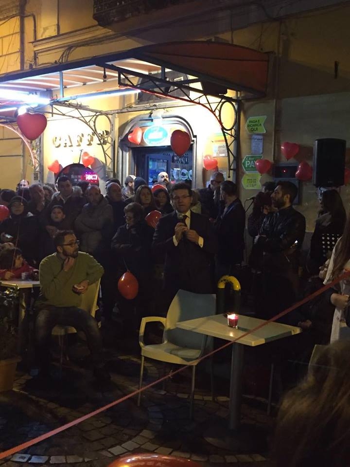 Grande successo per la prima edizione di “Acerra in Love”, che si è svolta ieri a causa del maltempo di sabato 14 febbraio: tantissime le coppie (e le famiglie) a fotografarsi sotto gli archi di palloncini, tra cuori di cioccolato, gruppi musicali, saltimbanchi, burattini e lanterne. E decine anche le coppie che hanno caricato la foto, fatta sotto gli archi di palloncini, sulla pagina facebook #acerrainlove 2016, creata appositamente, in questo modo potranno partecipare al concorso per vincere un week end. La manifestazione, organizzata dalla Pro Loco Città di Acerra, è stata patrocinata e cofinanziata dal Comune di Acerra.