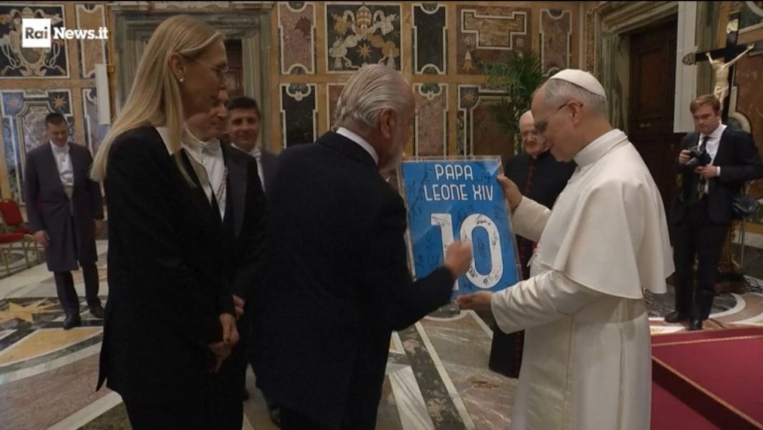 La squadra Napoli è andata in visita dal Papa Leone XIV e De Laurentiis gli ha donato la maglia numero 10