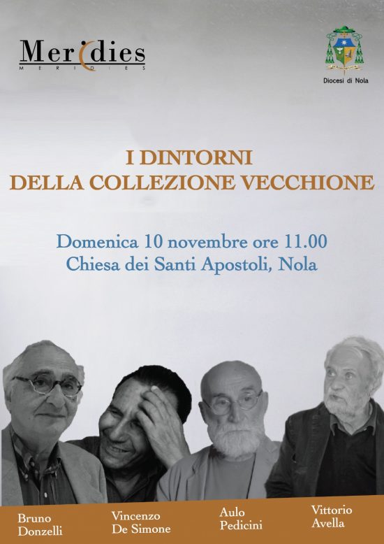 Domenica 10 novembre, alle ore 11, presso la chiesa dei Santi Apostoli di Nola, si svolgerà “I dintorni della collezione Vecchione”: un’occasione per entrare in quel mondo dell’arte contemporanea che tanto affascinò il collezionista nolano Luigi Vecchione, condotti dagli artisti Vittorio Avella, Vincenzo De Simone, Bruno Donzelli e Aulo Pedicini.