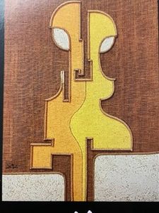 E così, nel quadro la cui immagine correda l’articolo, il dettaglio fondamentale è il “movimento” del verde che trasmette la sua vitalità alle rocce brulle e alla tenue velatura di celeste di cui l’artista si è servito per dipingere un mare stanco e, direi, spento. Dino Miele e Antonio Amato conoscono le sperimentazioni post-cubiste e “neoplastiche” di Mondrian, di Gino Severini e di Carlo Carrà: ma proprio come accade nei quadri di questi tre Maestri i due artisti ottavianesi fanno emergere dal mosaico di forme geometriche figure compiute che diventano un sostanzioso richiamo alla realtà: lo strumento musicale nel quadro di Dino Miele (immagine in appendice), la colomba in volo nell’opera di Antonio Amato (immagine in appendice).