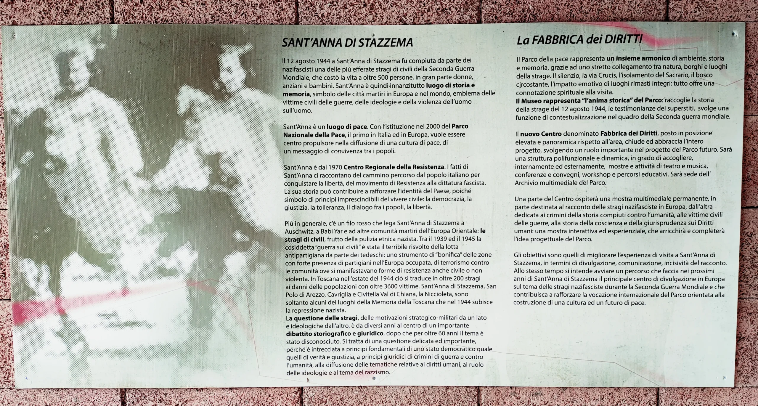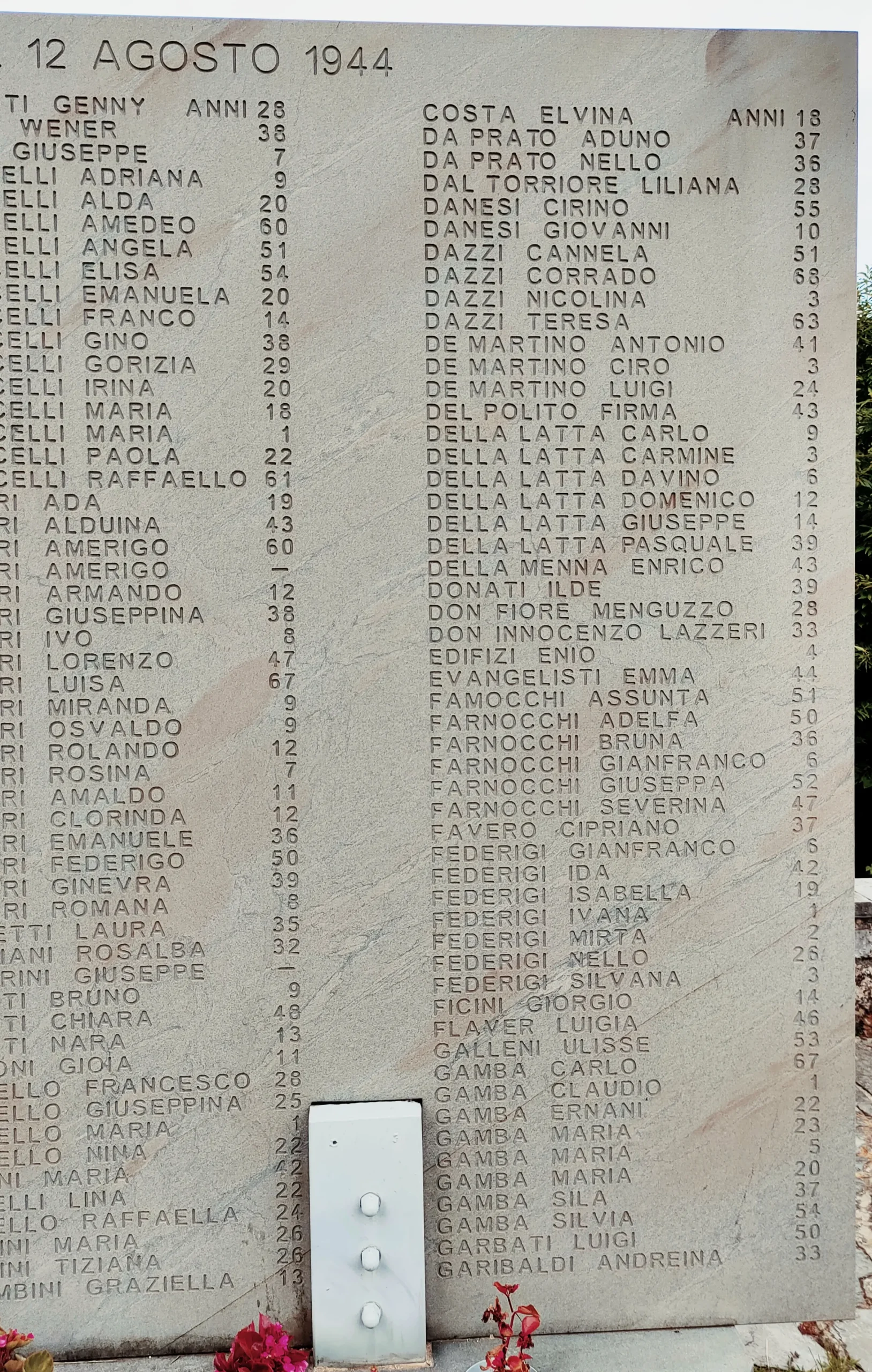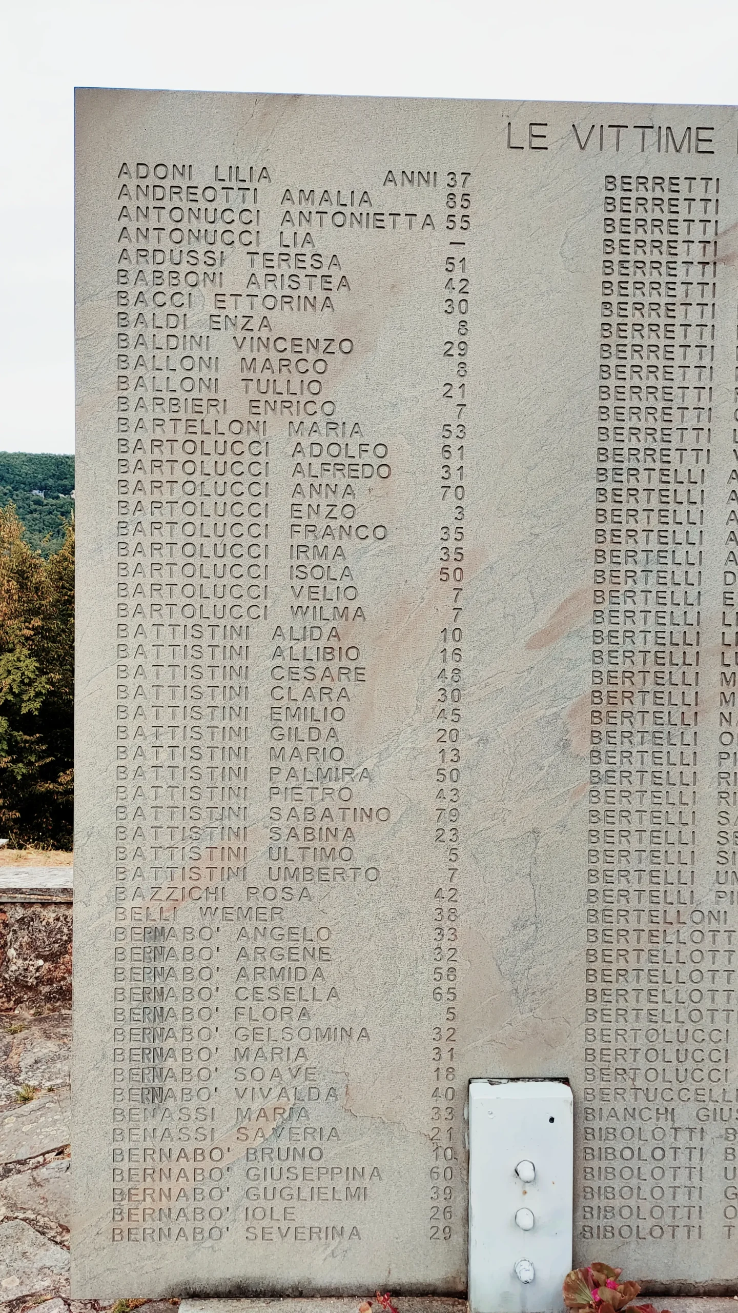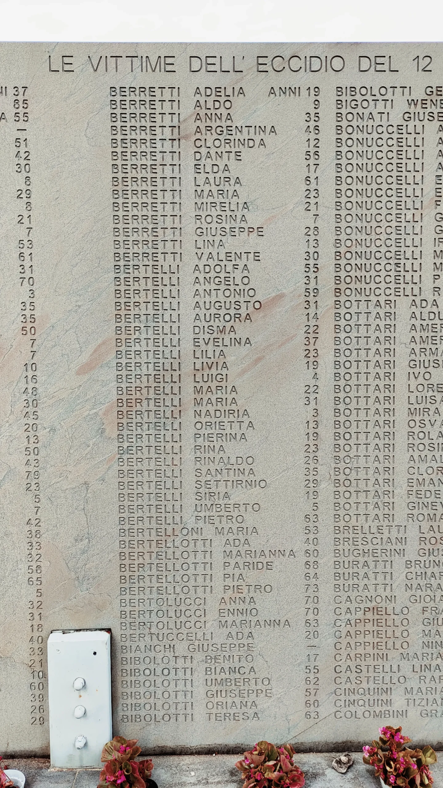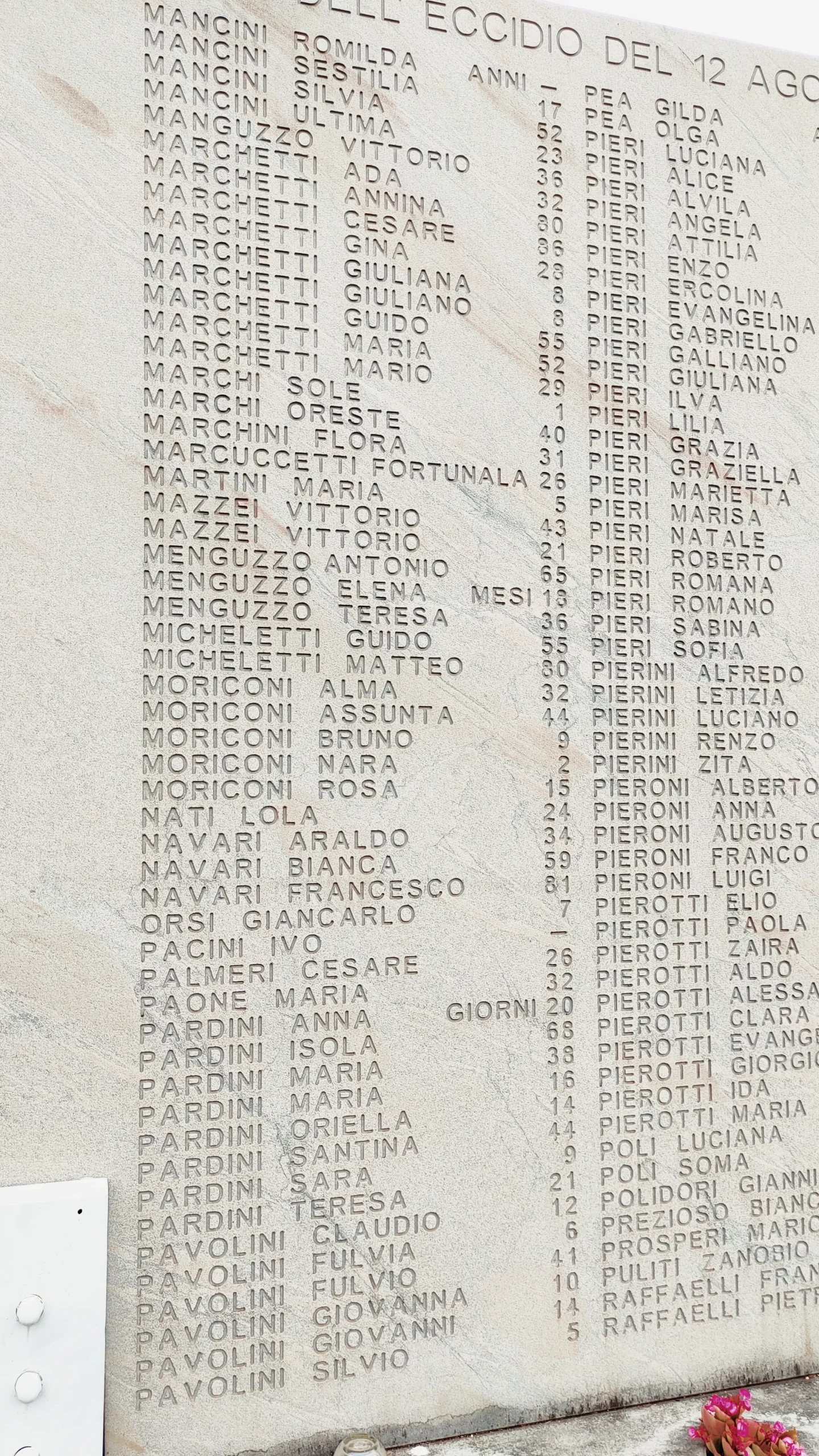 È impossibile rimanere indifferenti di fronte a quella lapide, dove i nomi di donne e bambini innocenti ci ricordano con tanta crudezza la brutalità di un passato che non deve essere dimenticato. Quei numeri indicanti l’età, incisi sul marmo accanto ai nomi, sono un pugno nello stomaco. La lapide scuote, riportando il visitatore alla crudeltà e all’orrore di un eccidio che ha segnato la storia.