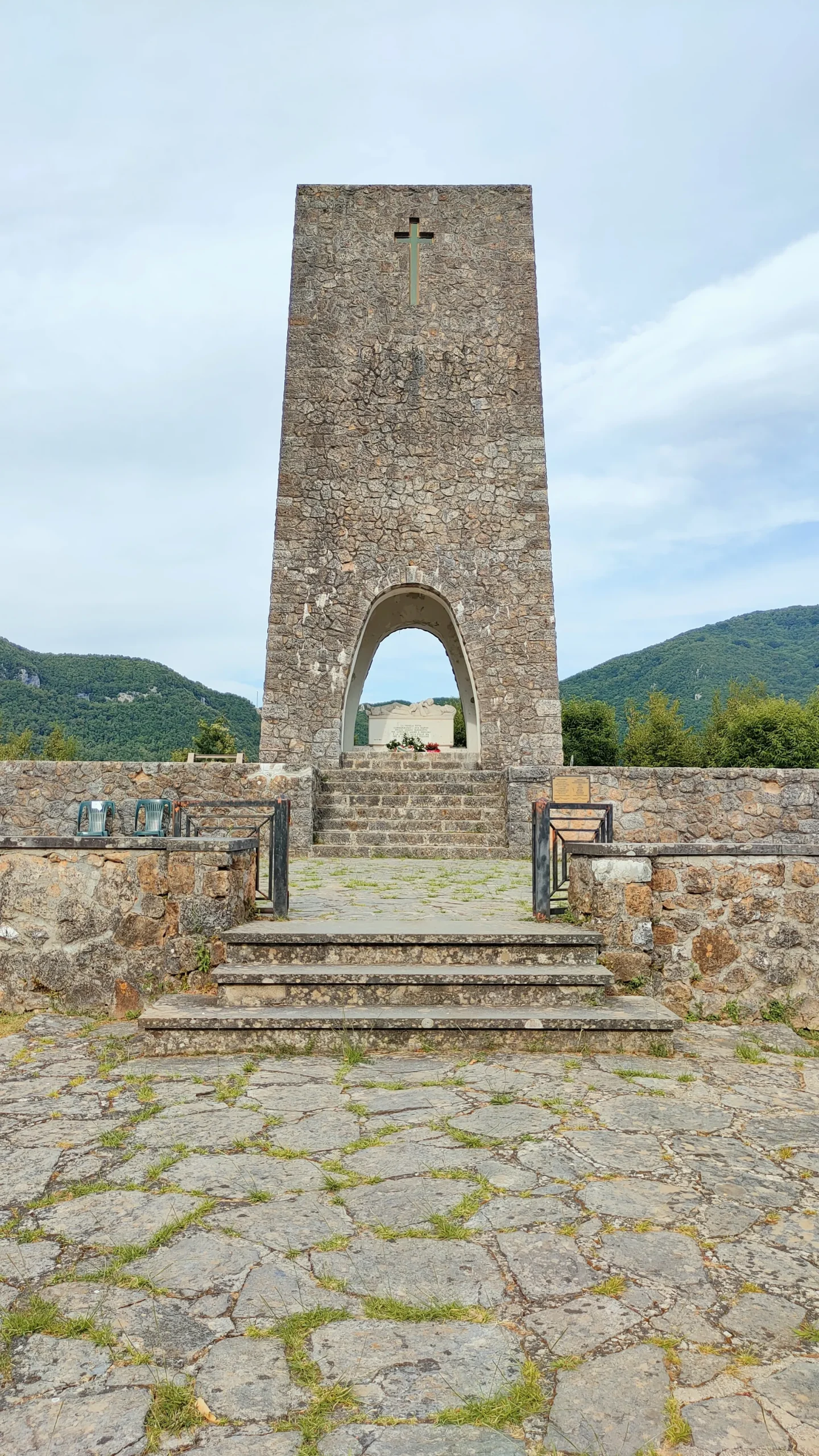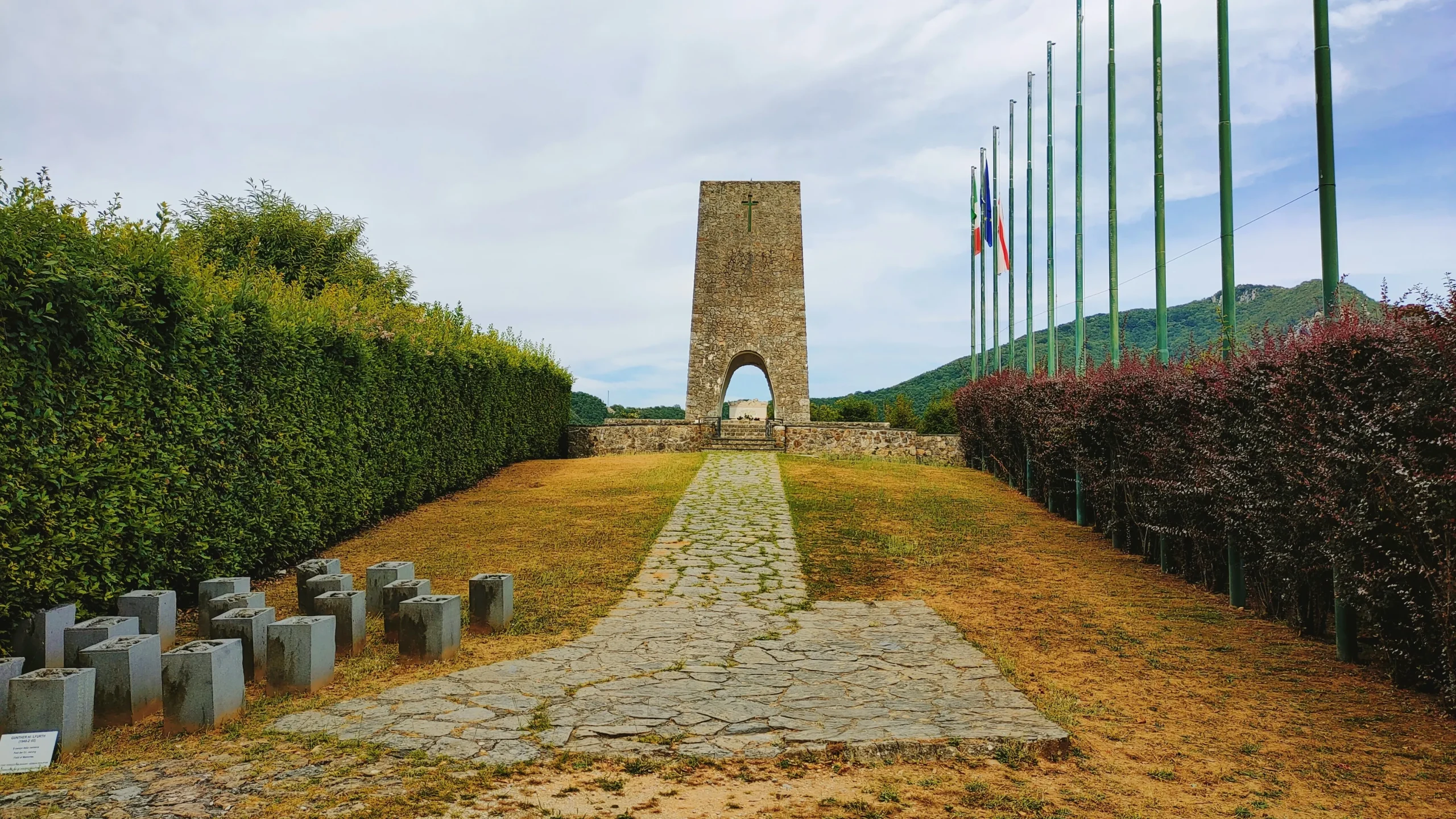 Questa volta, complice la comunione d’intenti col mio caro amico Paolo Cosimini, decidiamo di salirci in un afoso pomeriggio, quando, dopo un percorso in auto alquanto tortuoso, giungiamo fino al belvedere del Sacrario da un ripido sentiero di montagna.