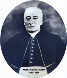 Nominato da Papa Leone XIII (1810 – 1903) Prelato domestico di Sua Santità, Mons. Sodano fu devotissimo della Madonna dell’Arco. Collaborò attivamente con il Priore domenicano Giuseppe Sammartino alla redazione e alla stesura del bollettino dell’omonimo santuario. A tal riguardo, il Rettore Sammartino, nel primo numero del 1891, esponendo i propositi e le speranze che cercava di realizzare tramite quella stampa, presentò ai lettori il suo fedele collaboratore, scrivendo queste sublimi parole: Ho qui accanto a me un sacerdote compaesano, il quale stanco dei suoi venticinque anni di insegnamento, dopo aver scritto ed operato moltissimo, si è come rifugiato all’ombra di questo Tempio, e come mi aiuta nell’opera del confessionale e nelle altre opere di culto, mi soccorre anche in questa. Egli confessa che, nato qui accanto alla casa della Madonna dell’Arco, accanto alla casa della Madonna vuole chiudere il corso della sua vita; e la sua mente, la sua penna, il letterario fuoco che gli rimane alla Madonna consacra.