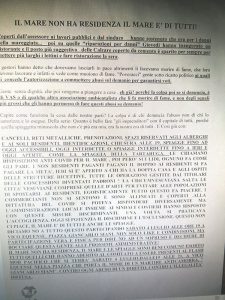 Da tutto ciò, dunque l’invito a partecipare numerosi alla manifestazione del 4 Luglio, per ricordare che “Alla dittatura del Covid, si poteva rispondere diversamente, ma l’amministrazione locale, insieme ai sindaci costieri, ha risposto con queste misure discriminanti. Una volta si praticava l’accoglienza, oggi si potenzia il discrimine e l’esclusione. Questo non ci piace, il mare è di tutti e anche le spiagge. “