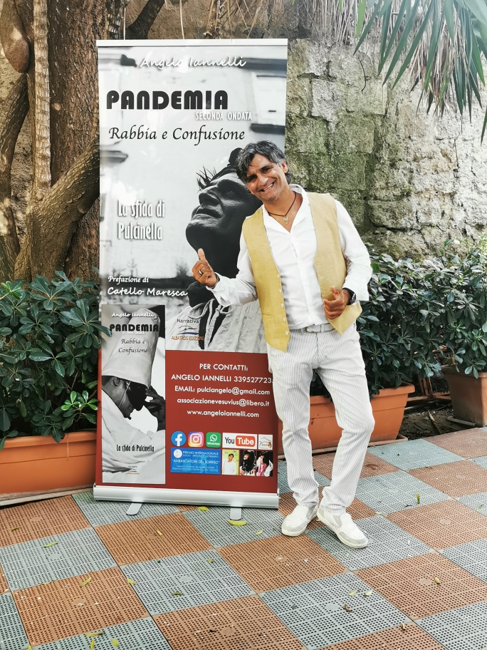 Un carro armato di emozioni , quello che porta in giro per l’Italia l’ambasciatore del sorriso Angelo Iannelli con il tour la “Rinascita” cultura, Moda, musica e degustazioni , l’erede della maschera di Pulcinella , conquista sempre più consensi. Dopo le tappe a Napoli a Villa Domi ,al sindacato UGL, a Brusciano ristorante Amor Mio, a S. Elia Fiume Rapido nel Basso Lazio nella Villa Comunale e Aversa (CE) al Palazzo Cascella. Martedì 6 Luglio è giunto a Pomigliano D’arco al ristorante Clori Flower Diner in Via Mauro Leone 100 dove si presentato a partire dalle ore 18.00 il libro” Pandemia II ondata Rabbia e Confusione la sfida di Pulcinella” suggestiva la location, immersa tra fiori, oggetti di arredo, piante, stampe, candele, cuscini e ceramiche in un cocktail di colori a rendere magica l’atmosfera oltre agli assaggi di frittura, aperitivi, birra artigianale, vini, formaggi è stata la musica del sassofonista Rocco Di Maiolo e la voce viscerale di Marcello Colasurdo. Da sottolineare la bravura del piccolo Adam pomiglianese, di appena sette anni suonatore di tammorra, un talento . L’evento è stato organizzato dall’ Associazione Vesuvius in collaborazione con Clori Flower Diner. Ha moderato la serata con raffinatezza e bravura, Edda Cioffi conduttrice TV e presentatrice.