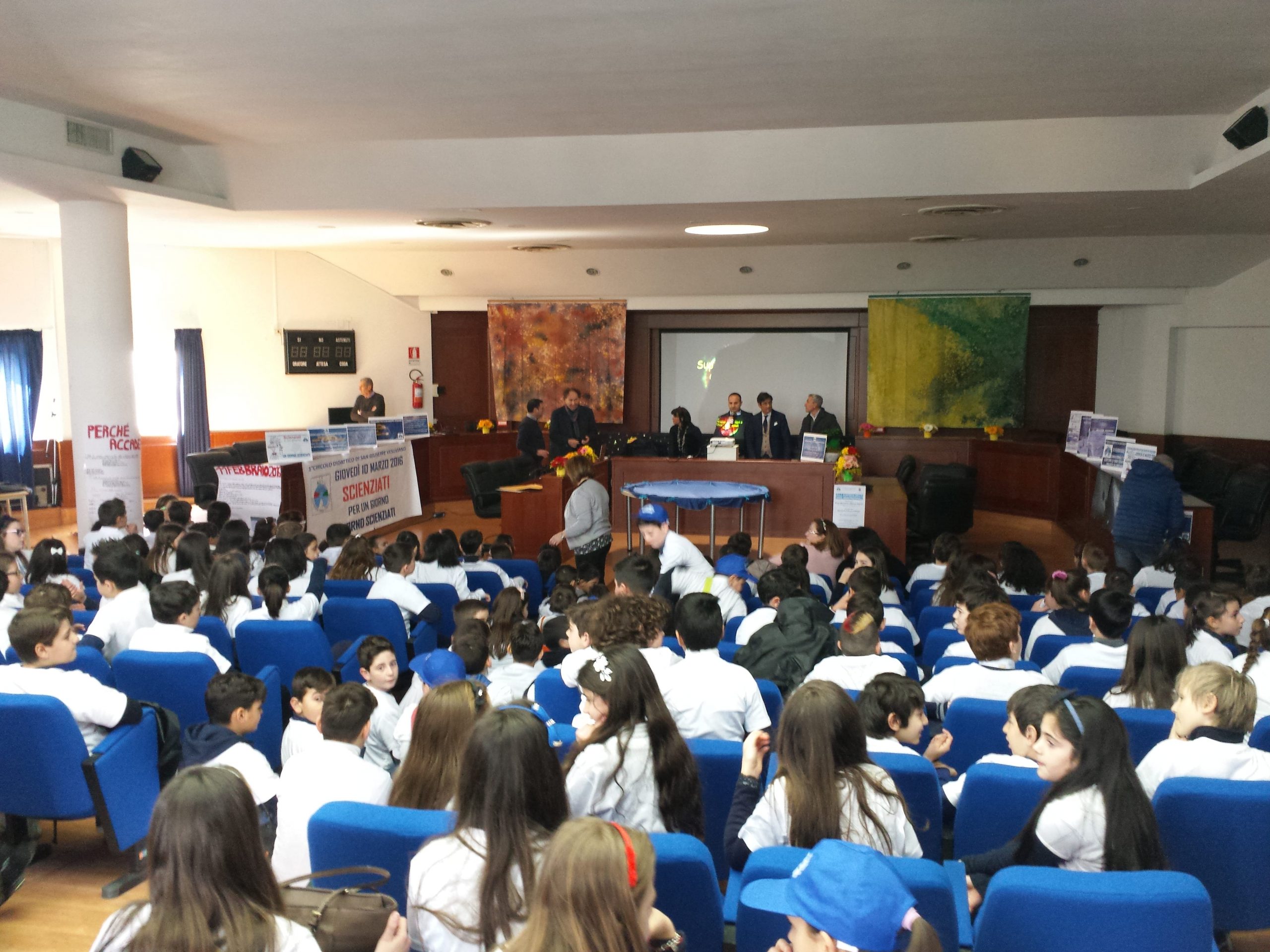 Un viaggio tra stelle, buchi neri ed onde gravitazionali, un incontro tra scienza e filosofia mediato da prove ed esperimenti: traguardi attuali e prospettive future dell’Astrofisica. È quello che hanno vissuto stamane i bambini del 1° Circolo Didattico attraverso le parole ed i racconti di Massimo Della Valle, Direttore dell’Osservatorio Astronomico di Capodimonte e ricercatore dell’Istituto Nazionale di Astrofisica. In un’aula consiliare gremitissima, arricchita dai lavori di Luigi Franzese, artista le cui opere riguardano la materia ed il cosmo, e dagli elaborati degli alunni che hanno partecipato all’incontro, Massimo Della Valle ha tenuto una coinvolgente lezione in cui ha spiegato l’origine dei buchi neri, spiegando i dettagli del percorso scientifico che ha consentito la sensazionale registrazione delle onde gravitazionali. Della Valle si è poi concesso alle numerose domande dei bambini, da quelle più tecniche a quelle più fantasiose. “Giappone ed Usa sono tra i Paesi che investono maggiormente in questo momento in ricerca, ma anche Italia e Francia hanno dato un fondamentale contributo alla scoperta – ha riferito durante la lezione – Delle onde gravitazionali, in ogni caso, non si deve avere alcun timore. Anzi, i processi tecnologici che hanno consentito la loro rilevazione consentiranno il progresso scientifico dell’umanità intera”. E poi, continuando: “entro 5 miliardi di anni, il tempo in cui il Sole si avvicinerà alla fine della sua vita, l’uomo dovrà spostarsi in un altro sistema solare per sopravvivere. Saremo tutti migranti”. All’evento svoltosi in aula consiliare, cui ha partecipato anche Francesco Ranieri, sindaco del Comune di Terzigno, sono intervenuti Vincenzo Catapano, sindaco di San Giuseppe Vesuviano, Luigi Miranda, assessore al governo del territorio, Maria Rosaria Fornaro, Dirigente del 1° Circolo Didattico e l’artista Luigi Franzese. “Un orgoglio aver potuto offrire ai bambini della nostra città la lezione di uno scienziato illustre come Massimo Della Valle” – ha evidenziato Catapano a margine dell’incontro. “Per gli studenti è un’ulteriore occasione per essere attenti all’ambiente, a partire dalla natura che ci circonda sino allo spazio più misterioso”. “Ai nostri bambini offriamo la possibilità di essere scienziati per un giorno, augurandogli di diventare un giorno scienziati, come recita lo slogan dell’evento di questa mattina – ha dichiarato Maria Rosaria Fornaro, Dirigente del 1° Circolo Didattico – La lezione tenuta dal prof. Massimo Della Valle, sono certa, ha accresciuto la loro curiosità e darà ulteriore linfa alla passione per le scienze”.