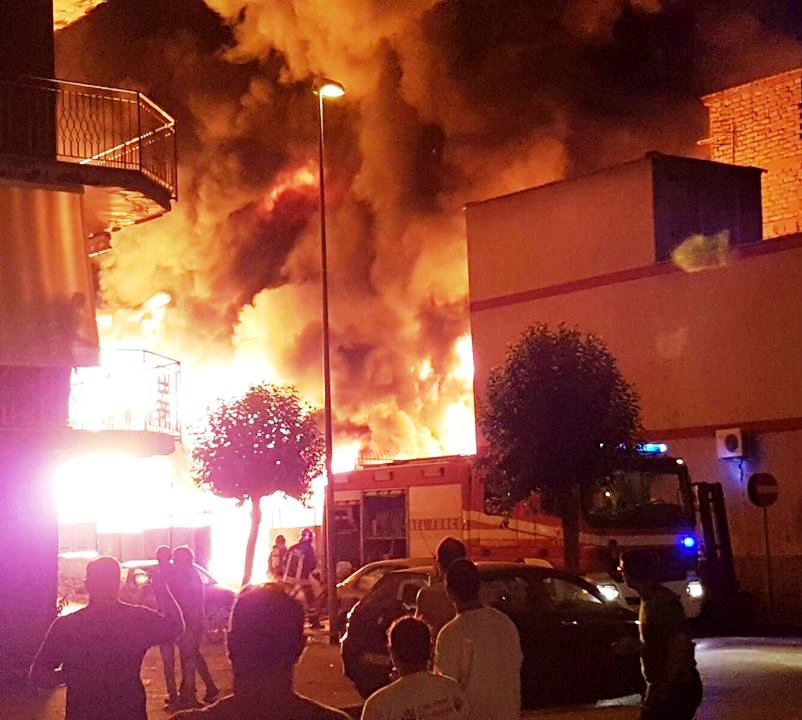 Allo scoppio immediatamente sono seguite le fiamme che si sono sprigionate dai locali del piano interrato dello stabile, al numero 30, che ospitavano il deposito-magazzino di materiale plastico della “Paparo Plastic”.