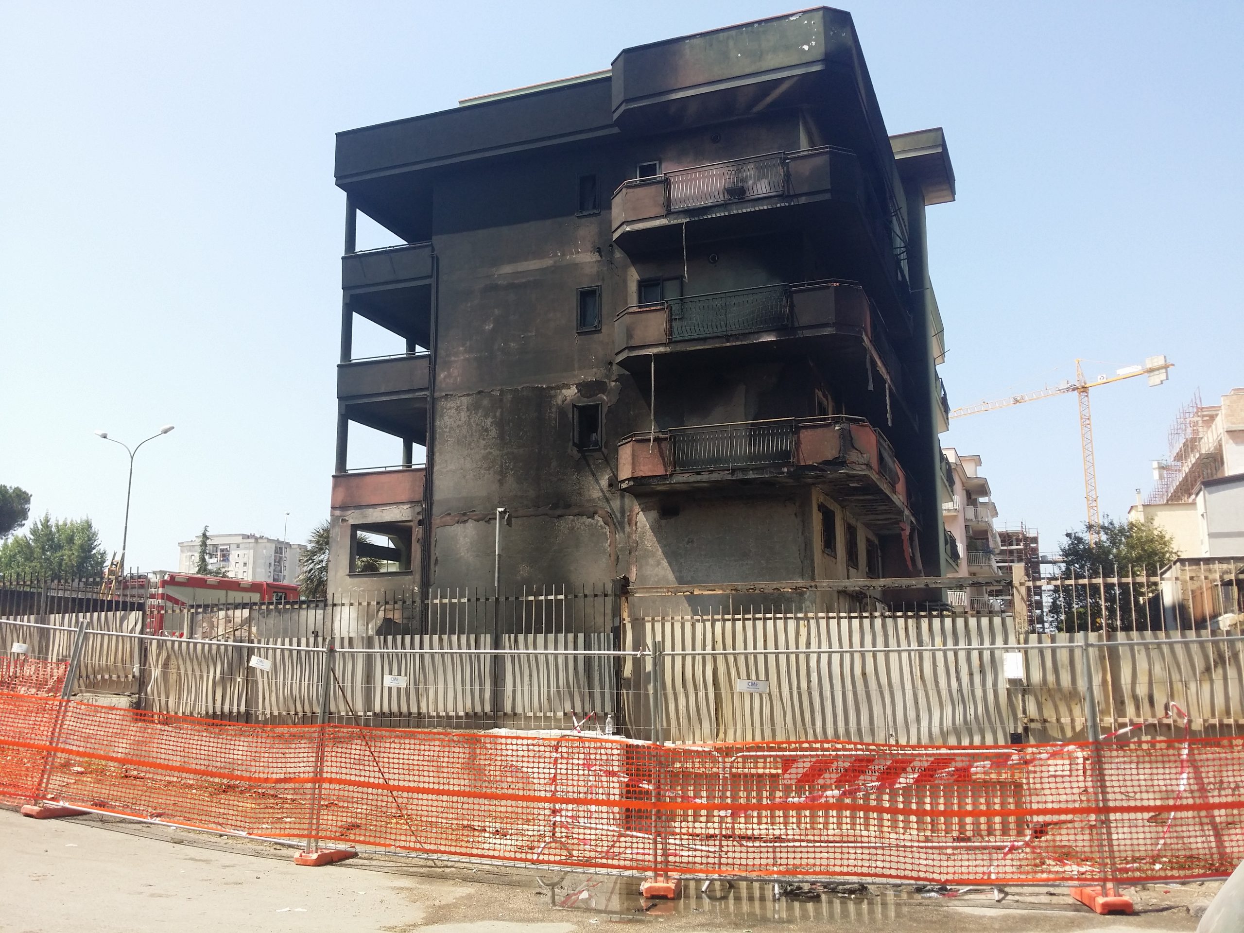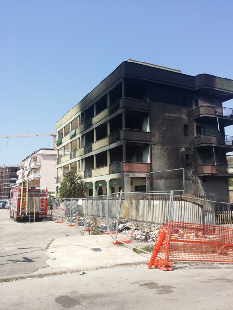 Le fiamme ed il fumo di ieri sera hanno lasciato il posto ad un odore acre che si respirava nell’aria stamattina, presso il luogo dell’incidente. La scena che si evidenziava alle prime luci del giorno ha mostrato più della metà di un palazzo di quattro piani completamente annerito dal fumo.