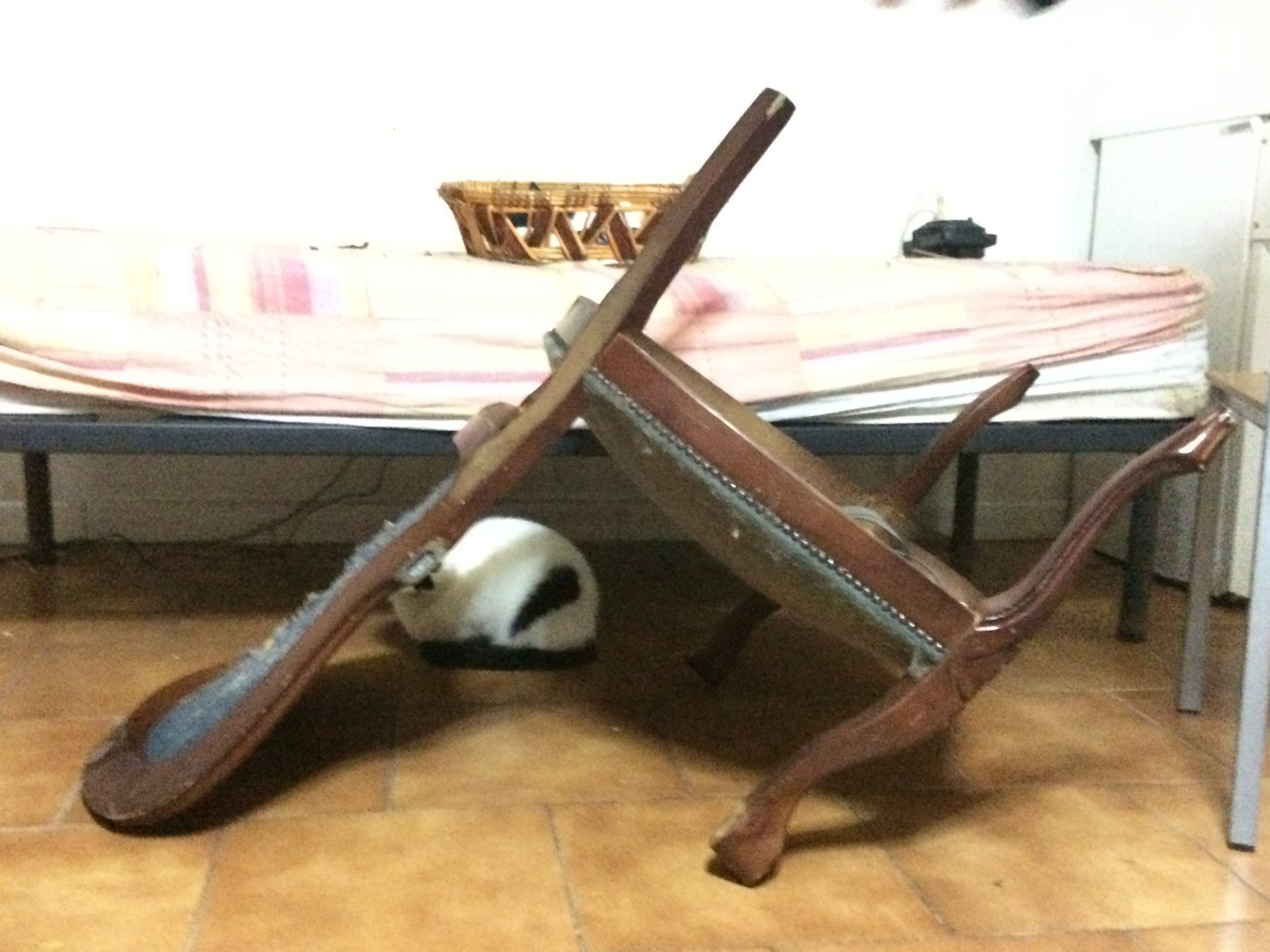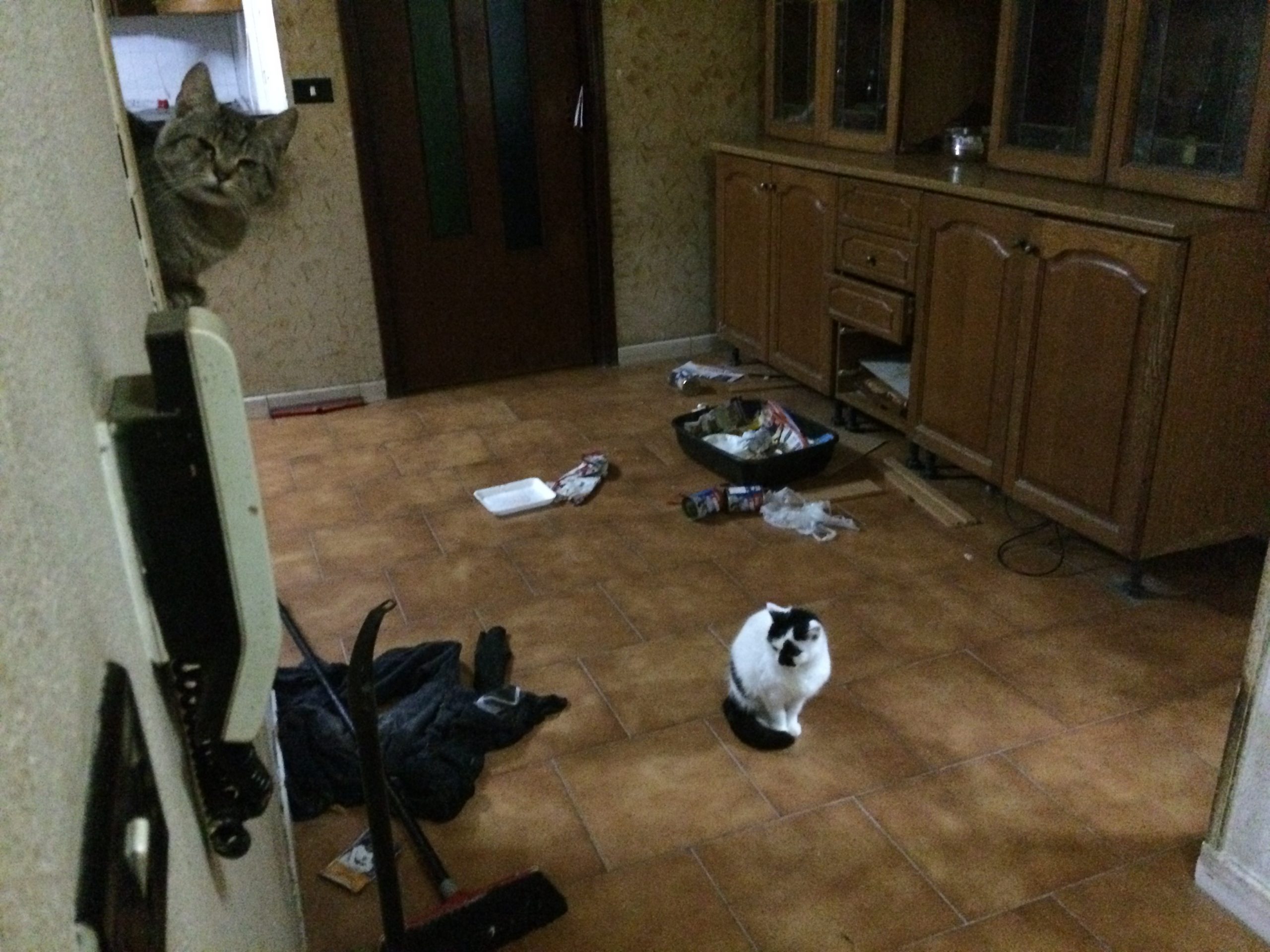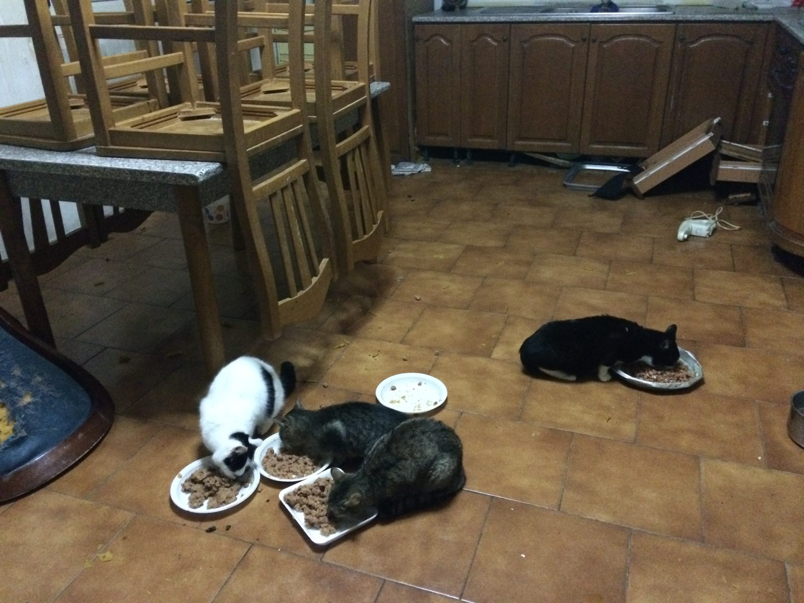 In una stanza il corpicino di un micetto si trova in una pozza di sangue ormai secco. Sembra che sia stato sgozzato. Presumibilmente da un altro gatto adulto della stessa colonia. Nell’abitazione, a parte dodici gatti, circondati da escrementi e spazzatura, non c’è nessun altro. La puzza nauseabonda infesta tutto l’appartamento e aleggia nella scala dell’edificio che compone il settore adiacente al distretto locale dell’Asl.