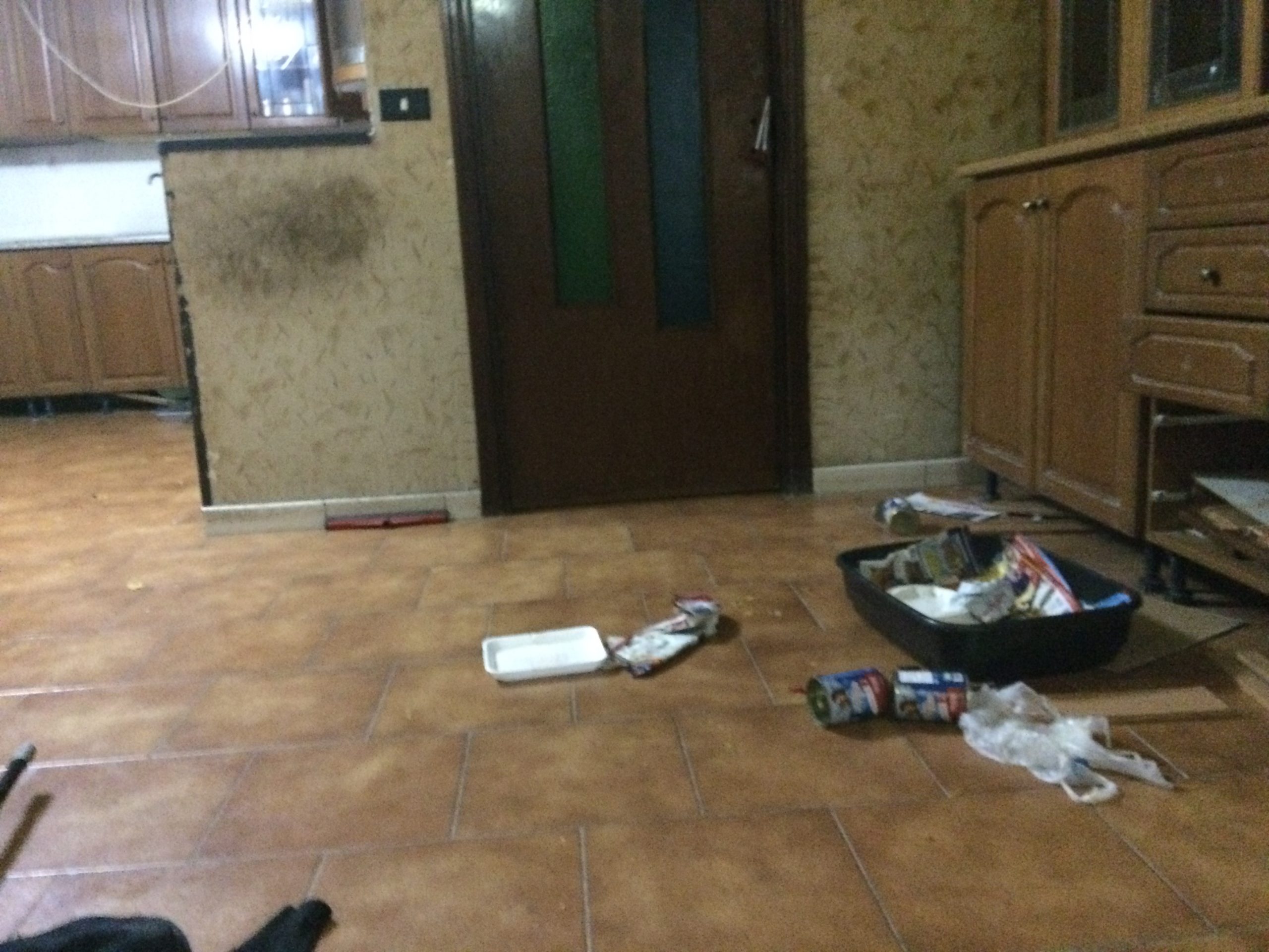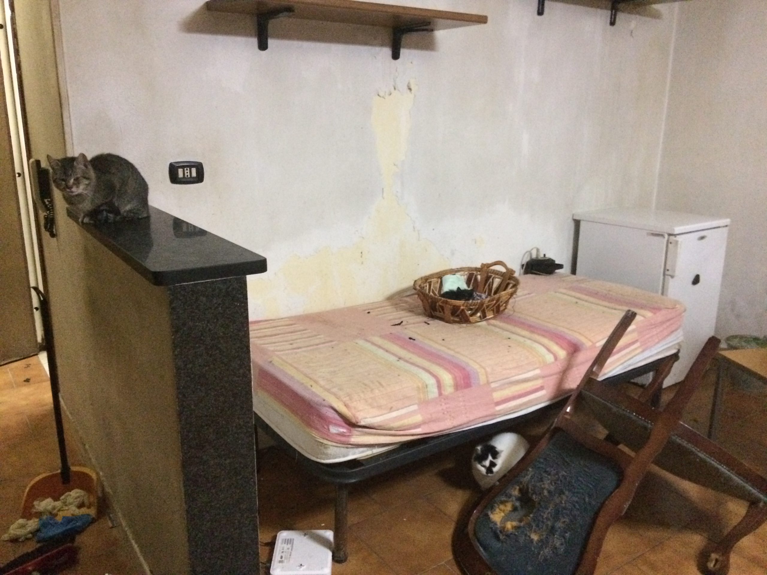 I gatti sbucano da ogni angolo della casa. Fanno capolino dal frigorifero, dai mobili, da ogni nascondiglio in cui sono riusciti a trovare un rifugio, e da lì escono solo quando arrivano a portargli da mangiare. Due mici sono stati già trovati senza vita. In mancanza di una soluzione alternativa, i residenti escludono di spostarli altrove, ciò significherebbe esporli a ulteriori rischi. “Già sono morti in due. Un altro è caduto dalla finestra e per fortuna è vivo”, hanno raccontato. Un problema ulteriore per quelle persone, già costrette a campare da anni in condizioni di degrado. Negli scantinati bui e umidi sono ammassati dei rifiuti e stagna dell’acqua confluita con la pioggia. Ne conseguono disagi legati all’umidità e alla muffa con cui quelle famiglie convivono ormai da tempo.