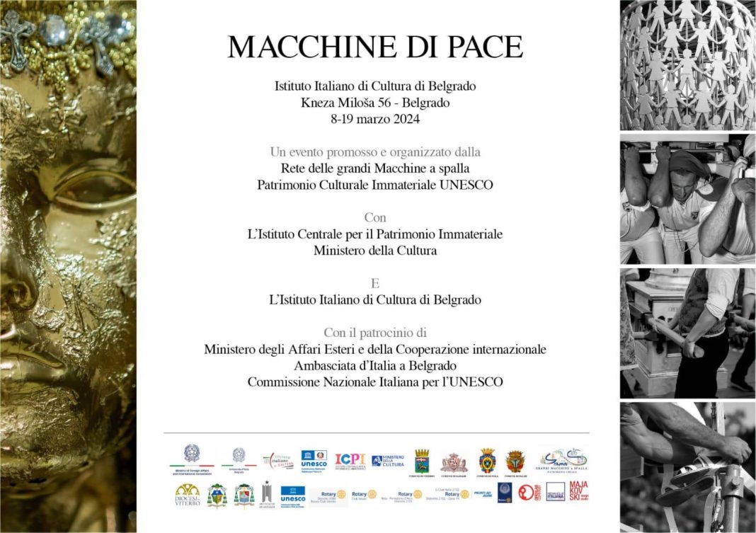 “L’evento, che si inaugura l’8 marzo nella capitale serba, – afferma Patrizia Nardi, responsabile tecnico scientifico della Rete delle Grandi Macchine a Spalle Italiane – declinerà insieme al tema della Pace -che è il chiaro messaggio che le nostre Macchine portano nel mondo contro la tragedia urlata dalle macchine da guerra- l’importanza del rispetto della parità di genere, che sola può garantire la crescita armoniosa e pacifica dell’umanità. Pace e parità di genere sono importanti obiettivi per l’UNESCO, così come per l’Agenda ONU 2030 per lo Sviluppo sostenibile”.