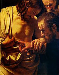 Ma torniamo al tema di oggi. L’arte dei Maestri arriva, talvolta, alle stesse conclusioni dei teologi e dei filosofi: e ci arriva per una strada più breve, più netta, più spettacolare. Il “Cristo che risorge”, che fece parte della collezione dei Medici e che oggi appartiene alla “quadreria” di Palazzo Pitti, Rubens lo dipinse nel 1616, proponendosi chiaramente di “rovesciare” l’iconografia della Resurrezione codificata da Raffaello e dalla pittura rinascimentale. Il Cristo risorto del Maestro olandese non sale in alto, verso i cieli, con la leggerezza luminosa dello Spirito, ma è un uomo dal corpo possente, dalla muscolatura virile, che non porta nessun segno di morte e di sofferenza: Egli esce dal sepolcro e si appresta a levarsi in piedi e a venire verso di noi, verso la Terra. Nel quadro di Caravaggio (immagine in appendice) il Cristo risorto che cerca di vincere l’incredulità di Tommaso è un uomo, nel colore delle carni e nel tono dell’espressione. E mentre spinge dentro la ferita il dito della mano rozza e sporca del Suo seguace che non crede che quell’uomo che gli sta di fronte sia Cristo risorto, pare che Egli avverta ancora dolore: i labbri della ferita (e forse dovrei scrivere “le labbra”, perché quella ferita è una bocca che parla), le rughe sulla fronte di Tommaso, i muscoli delle mani di Cristo pare che si muovano, nella tensione di una scena tutta terrena. Sì, il Dio che soffre è la verità che permise al Cristianesimo di mandar via dall’Olimpo gli dei antichi.