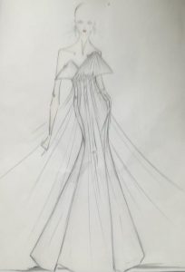 Dunque, per Luisa e l’Atelier Gifuni, l’abito che simboleggia la città non poteva che essere una sirena. In mikado di seta pura, con le coppe che delineano il Vesuvio e il Monte Somma – simbolo della provincia vesuviana dove la sartoria ha sede, in via D’Auria 77 a Sant’Anastasia (ma tra pochi mesi la sede di Atelier Gifuni si sposterà dinanzi al Santuario di Madonna dell’Arco) – con una cintura di perline ricamata a mano e tante strisce di tessuto in chiffon di seta pura che Luisa ha voluto stracciare, lacerare, lasciare libere. «La linea si chiama Passione e la mia prima passione, appunto, è Napoli – dice Luisa Gifuni – che è anche tormento, dolore e al contempo bellezza senza eguali. Fa male vedere le proprie radici lacerate, bistrattate come lo sono oggi, ma l’amore non cambia e la speranza rimane».