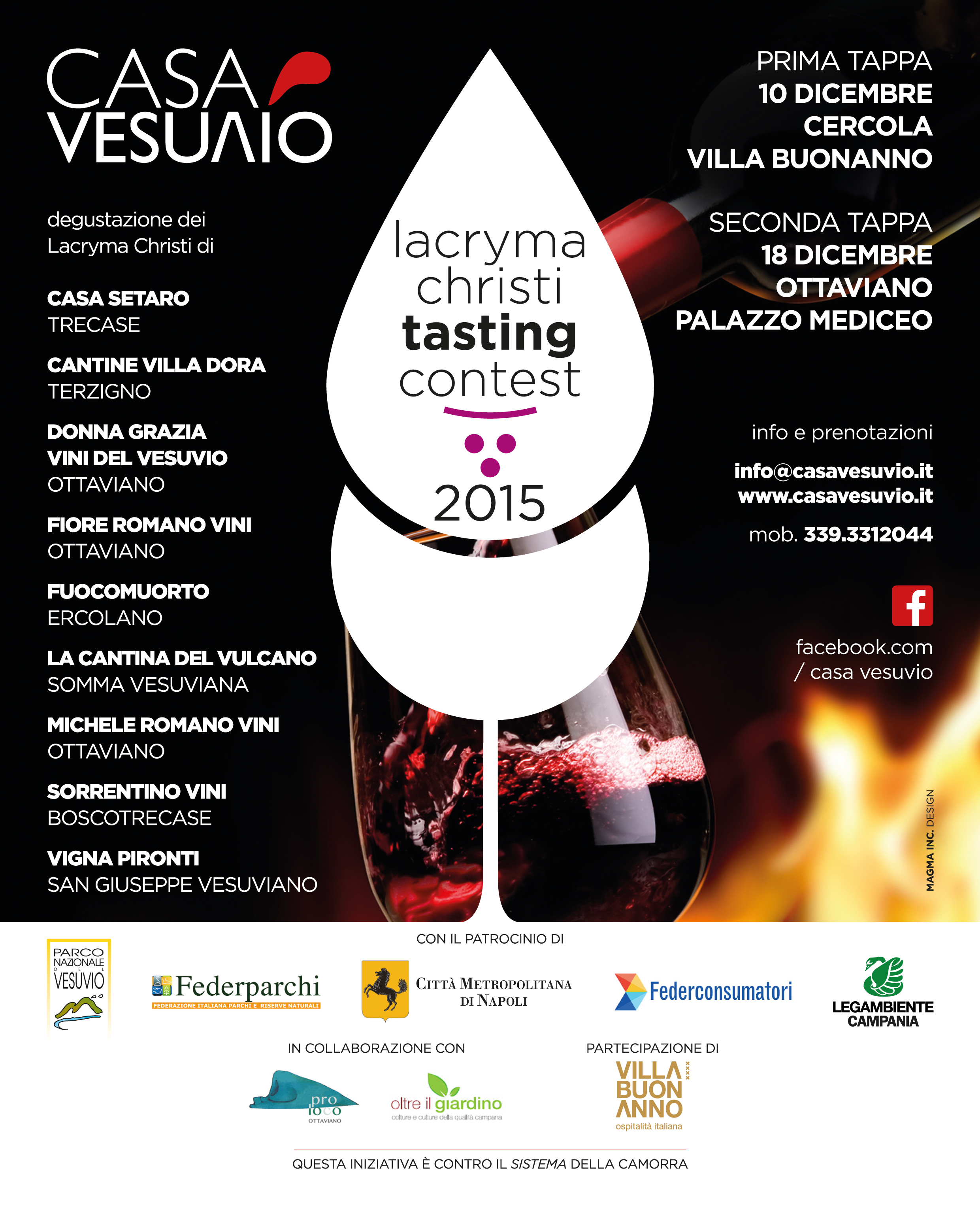 Si svolgerà in due tappe la Prima Edizione del Lacryma Christi Tasting Contest: Cercola 10 Dicembre a Villa Buonanno; Ottaviano il 18 Dicembre nel Castello Mediceo.