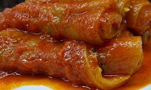 Ingredienti: 4 fette di cotica di maiale; 1 cipolla; 2 fette di formaggio pecorino; ½ bicchiere di vino bianco; passata di pomodoro; basilico; olio; pepe; aglio, prezzemolo, sale. Disporre sulle fette di cotica aperte il trito di aglio e prezzemolo, i piccoli pezzi di formaggio e spolverare il tutto con il pepe. Avvolgere in braciole le fette di cotica e chiuderle con spago alimentare. Le braciole vanno rosolate in un tegame, nell’olio e nella cipolla “imbiondita” e vanno “sfumate” con il vino bianco. Quando le braciole prenderanno sapore, aggiungete la passata di pomodoro, il basilico, il sale e un po’ d’acqua, coprite il tegame e lasciate cuocere per circa due ore. Infine, togliete il coperchio e aspettate che il sugo “si restringa” fino a diventare morbido come un velluto. Lo chef Biagio introduce in questa ricetta tradizionale una novità: prima di iniziare la preparazione, bagna le cotiche nel Lacrima Christi rosso (www. osteriadicarmela.it).