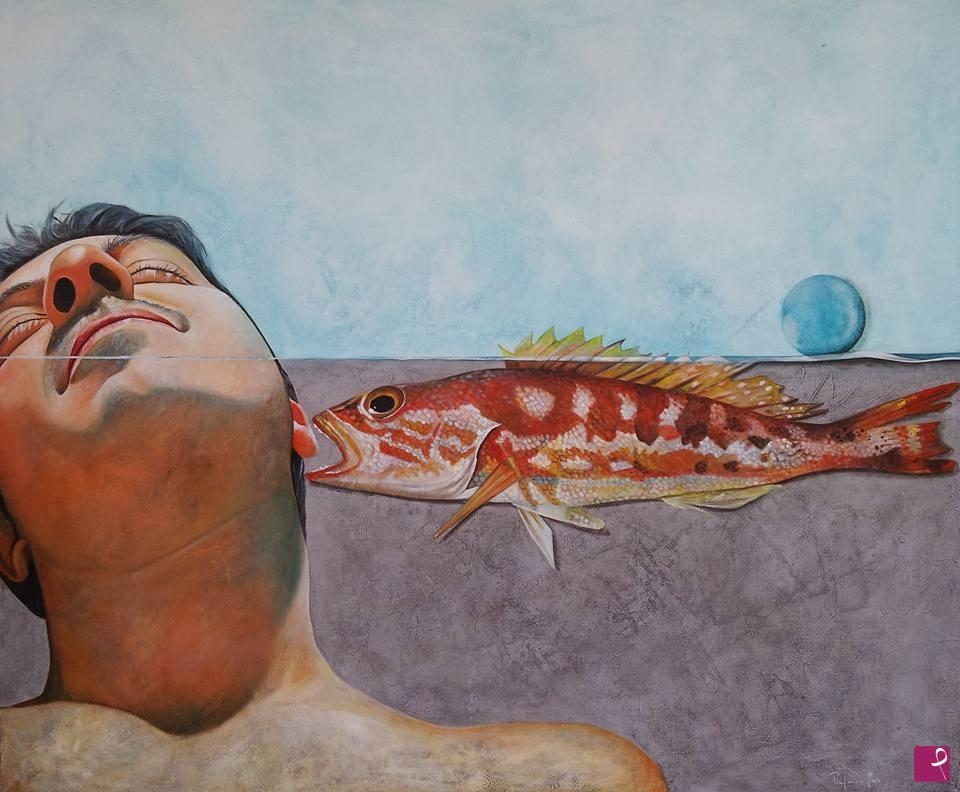 Ci fu chi vide in essa l’immagine del membro virile: Galeno, invece, si dichiarò certo che nel maschio che bevesse del vino in cui era stata affogata una triglia si prosciugavano il desiderio di Venere e gli umori connessi: insomma, una maledizione. Un altro medico greco, di cui non conosciamo il nome, ma che era certamente più misericordioso di Galeno, annacquò di molto questa terribile “virtù” della triglia: a chi beve del vino in cui sia stata affogata una triglia non capitano quei prosciugamenti nefasti, capita, tutt’al più, di diventare astemio, di incominciare a odiare Bacco: ma non Venere. Gli ammiratori della triglia, infine, misero in giro la voce che chi mangia questo pesce acquista una vigorosa immunità contro tutti i veleni e tutte le “fatture”, anche contro la “ magia nera “ delle pomate che le fattucchiere preparano con il sangue mestruale. Gli ammiratori “ spurgarono” da ogni maleficio anche il morso della triglia: non procura i tremori e le smanie che sono segnali della follia, come scrivevano i soliti menagramo; al contrario, quel morso – che è cosa rara, non ho mai sentito parlare di qualcuno che sia stato addentato da una triglia – quel morso immette nello spirito e nel corpo umori freschi e energia: chi sa di che segno è la triglia perfetta – una perfezione metafisica – che nel quadro di Pierfrancesco Fazio, citato accanto al titolo, si accinge a mordere l’orecchio del giovane soddisfatto, quasi in estasi:: chi sa se questa sua soddisfazione estatica ignora il pericolo imminente, o nasce proprio dalla speranza che il morso sia corroborante.