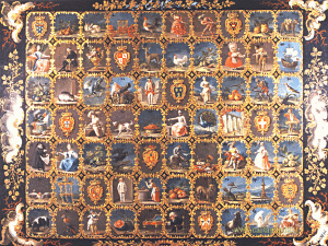 La quadreria dei Medici di Ottajano era il prezioso risultato di tre secoli di acquisti, di “corredi” matrimoniali, di lasciti: erano stati ospiti della famiglia il Solimena, Volaire, Pietro Fabris,Vervloet, Smargiassi, i Palizzi. Luigi de’ Medici aveva protetto Pitloo e gli aveva fatto assegnare la cattedra di paesaggio presso l’Istituto delle Belle Arti, il pronipote e erede Giuseppe IV aveva collezionato opere di Duclère e grazie al matrimonio con Anna Gaetani dei duchi di Miranda era diventato padrone del palazzo di Chiaia – che da palazzo Miranda divenne Palazzo Ottajano – e della eccezionale quadreria che il palazzo ospitava.Gli atti notarili dicono che, nella divisione, Angelica ottenne un numero cospicuo di opere, ma non ne forniscono l’elenco: è probabile che notizie più precise si trovino nel contratto matrimoniale. Non ci sono dubbi sul fatto che nelle collezioni del Museo Correale ci sono quadri “portati” a Sorrento dalla nobildonna ottajanese: lo testimonia il suo ritratto, collocato accanto a quello del marito, all’ingresso del Museo. Certamente un quadro di Vervloet con “il porto della Torre” faceva parte del patrimonio di Giuseppe IV, nonno di Angelica: potrebbe essere l’opera, del Vervloet, che i curatori del Museo intitolano: “Torre del Greco”.( v. foto in appendice). E il raffinato tavolo per il gioco dei biribissi (vedi foto) potrebbe essere quello che appartenne a Luigi de’ Medici, come sembra indicare lo stemma dipinto in una delle “stazioni”.