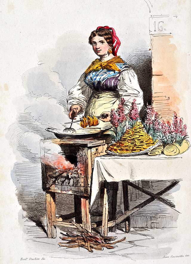 Per le “Vie del gusto” il ristorante “Gustò” di Somma Vesuviana ha preparato un menù “illuminato” dal fritto misto alla napoletana e concluso, in un crescendo musicale, dalla pizza. I sapori e i profumi della storia: ricordano gli studiosi che l’eredità del cibo da strada viene alla civiltà napoletana dall’antica Pompei, in cui i i banchi e le fornaci dei “termopolia” si affacciavano sulle vie e fornivano ai clienti anche polpette di gamberi, tortini di zucca, fette di pasticci e di gustose farinate di grano..Quelle antiche botteghe da cui si effondevano all’aperto vapori densi di grassi odori, e i tavernieri rumorosi, e le ancelle prosperose e ardenti ritornavano alla mente di Guglielmo Peirce quando contemplava le friggitorie napoletane: “cariche di marmi e di ottone, esse vendono ai loro avventori qualche cosa che voi mangiate, che sentite in bocca, sotto i denti, ma che non esiste e che tuttavia vi sembra di vedere.”. “Gustò” riuscirà a rinnovare il prodigio: gli amici delle “Vie del gusto” godranno della delizia immediata di frittelle, crocché e pizze, e nello stesso tempo “sentiranno” il profumo e il sapore che viene dalla memoria dei luoghi vesuviani. E nel gioco piacevole della rimembranza li sosterranno anche i ritmi ancestrali della musica di Felice Cutolo e di Carmine Coppola.