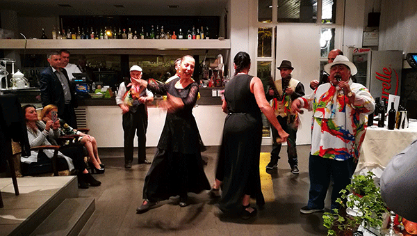Mercoledì sera un notevole contributo alla riflessione dei convitati oltre che alla gioia del convito è stato dato dalla “tammorra” del gruppo “O bell’o nient’”, dall’ eleganza delle due ballerine, dalla voce di Lino Sabella, dal violino di Ferdinando De Simone e di Ondina Furnari. Un affascinante dispiegarsi di ritmi: le note ossessive e incalzanti della “taranta”, il vigore vocale di Lino che è entrato splendidamente anche nell’”anima” complicata di due canzoni classiche napoletane diverse all’apparenza, affini nella sostanza, “’O surdato ‘nnammurato” e “Tammurriata nera”, e poi il violino di Ferdinando e di Ondina che ha evocato la malinconica leggerezza della musica composta da Nicola Piovani per il film “La vita è bella”: ogni momento di musica ricordava ai convitati che la cucina e l’amicizia sono armonia, che non per caso quasi tutti i grandi musicisti sono stati cuochi o esperti gastronomi. La cucina è anche pittura, diceva Giorgio Morandi, la cucina è scultura, sosteneva Picasso, la cucina è soprattutto storia, ci hanno spiegato Piero Camporesi e Massimo Montanari.