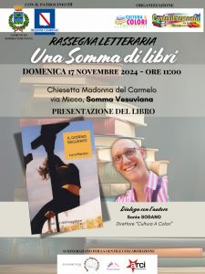 Somma Vesuviana (NA) – Domenica 17 novembre, alle ore 11, presso la suggestiva Chiesetta del Carmelo in via Micco a Somma Vesuviana, si terrà il quarto incontro della rassegna letteraria “Una Somma di Libri”, organizzata da Cartolibromania Malva e Cultura a Colori, con il patrocinio del Comune di Somma Vesuviana e della Regione Campania.