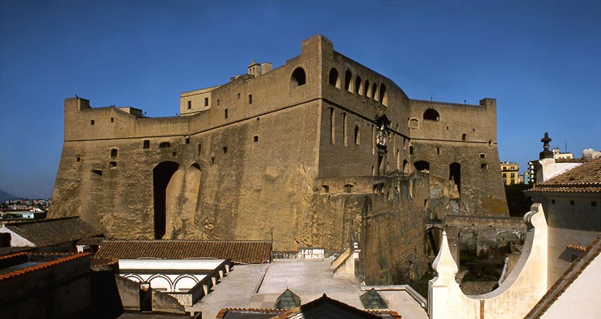 Questo possente edificio (il primo castello per estensione della città), in parte ricavato dalla viva roccia (tufo giallo napoletano), trae origine da una torre d’osservazione normanna chiamata Belforte. Per la sua importanza strategica, il castello è sempre stato un possedimento molto ambito: dalla sua posizione (250 m s.l.m.) si può osservare tutta la città, il golfo, e le strade che dalle alture circostanti conducono alla città.