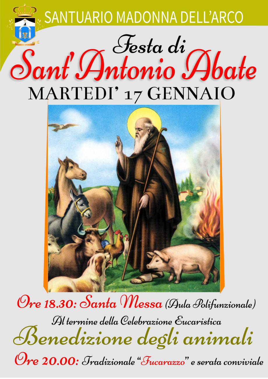 Il rito religioso, infine (alle 19) la benedizione degli animali che – precisa il rettore padre Alessio Romano – saranno i benvenuti nell’aula intitolata a Leonardi. La festa di Sant’Antonio Abate, noto in tutto il Meridione come «Sant’Antuono», proseguirà nel piazzale dinanzi alla struttura, con il tradizionale fucarazzo (ore 20) – simbolo di rinascita e purificazione – e una serata conviviale con cibo e buon vino.