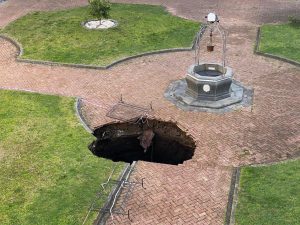 Una voragine che sembra allargarsi ogni giorno che passa, uno squarcio inquietante, un baratro nel luogo dove ogni giorno si riuniscono i pellegrini che arrivano in Santuario, dove si tengono eventi e concerti, dove i fujenti si riposano il lunedì in Albis, il luogo dove, nella suggestiva passeggiata che lo circonda, si affacciano il Museo che ospita la più grande collezione al mondo di ex voto, l’antica farmacia dei Domenicani, la sala offerte, l’antico refettorio oggi trasformato in un’elegante sala dove si organizzano mostre, concerti, iniziative culturali, la biblioteca a disposizione degli studiosi.