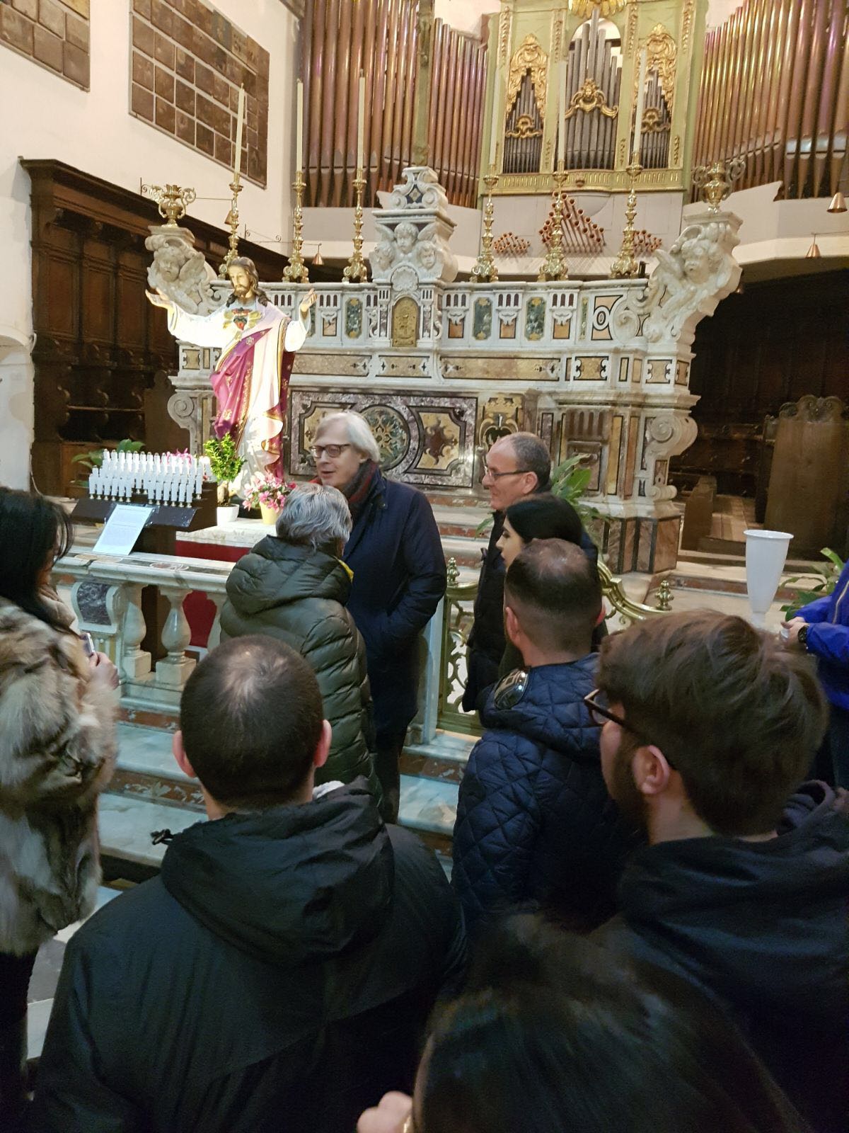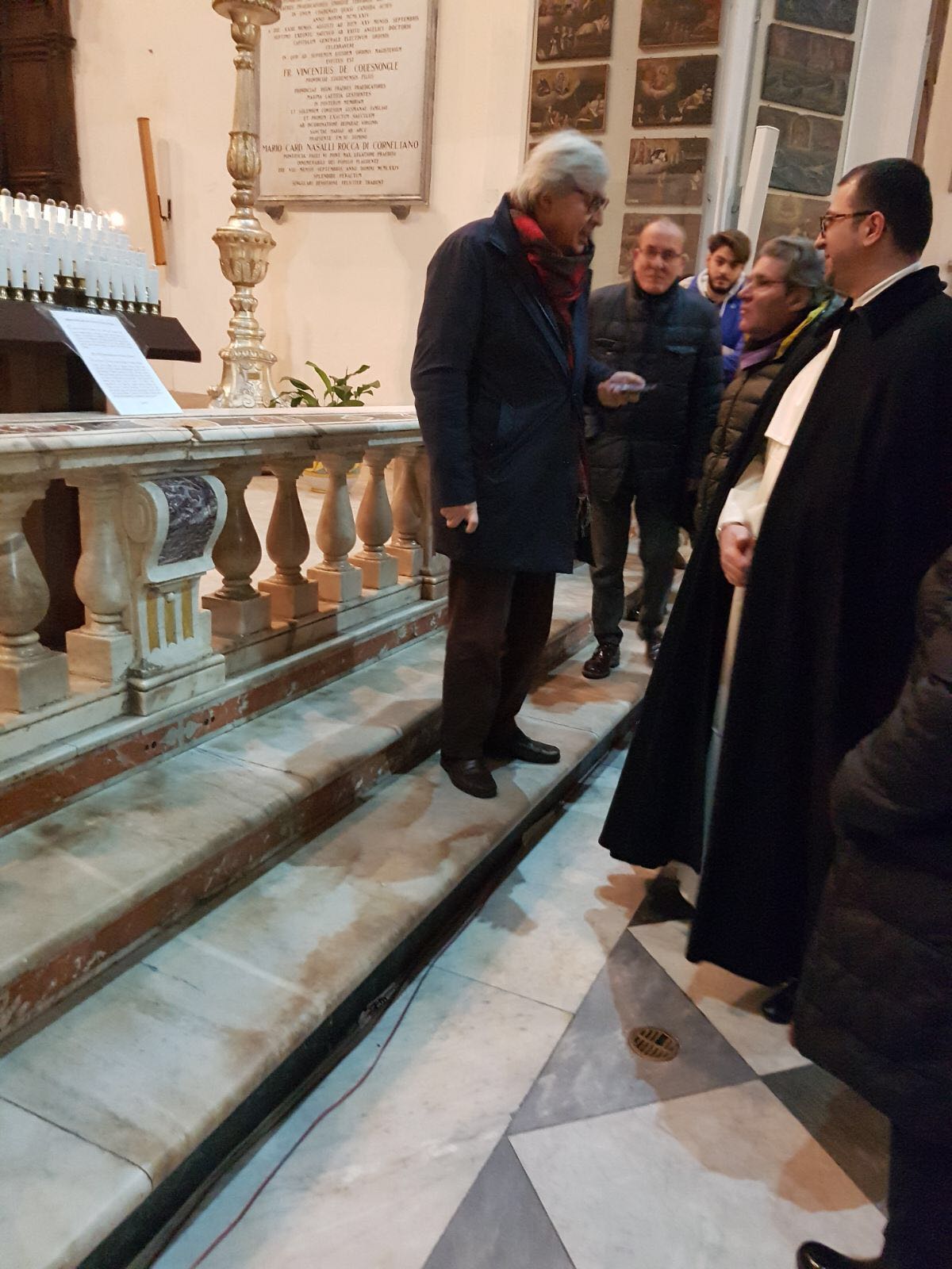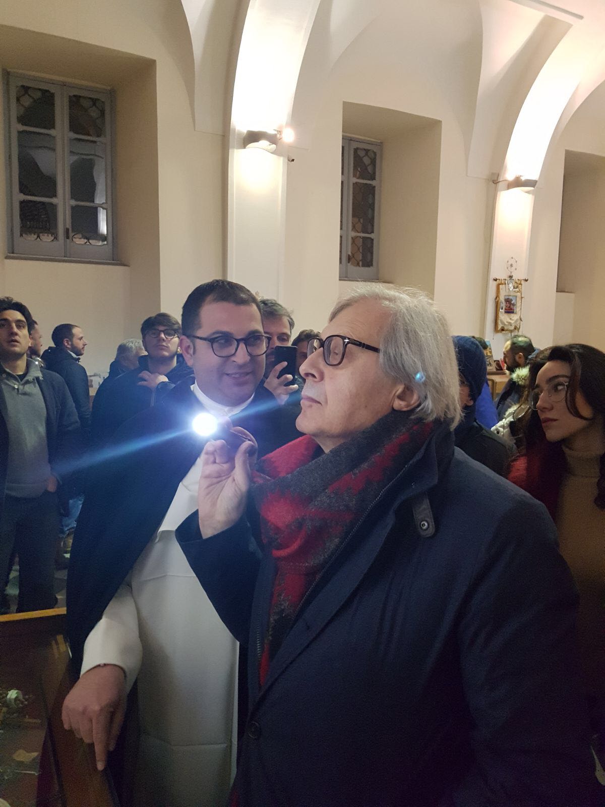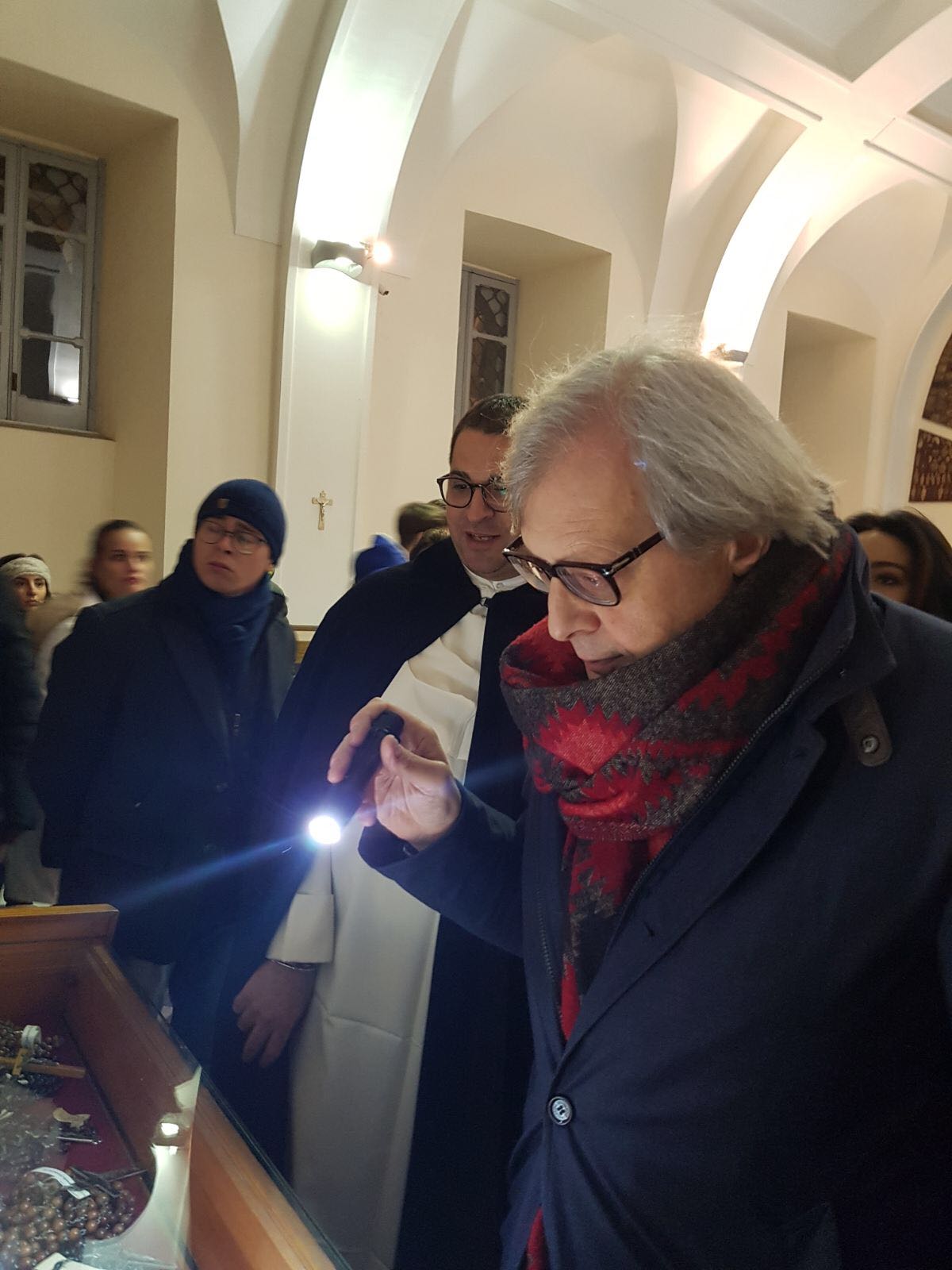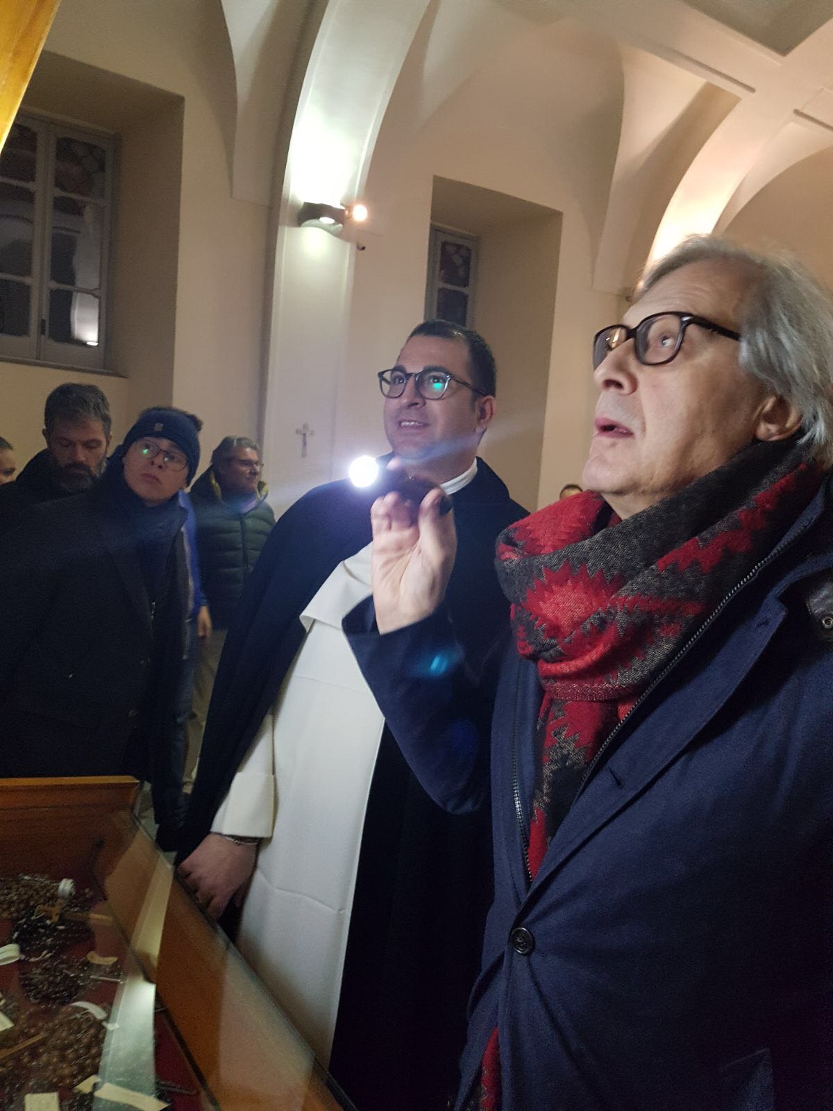 Una pausa dalla campagna elettorale per il critico d’arte Vittorio Sgarbi che ha voluto visitare, senza clamori e senza seguito, il Santuario di Madonna dell’Arco a Sant’Anastasia. Ha contattato il rettore del convento domenicano, padre Alessio Romano, e nella serata di ieri ha trascorso più di un’ora ad ammirare le tavolette votive del Santuario, famose in tutto il mondo, ha osservato il chiostro, contemplato l’antica farmacia dai soffitti affrescati e ha ricevuto in dono i volumi che illustrano la storia e le ricchezze del Santuario dedicato alla Vergine dell’Arco.