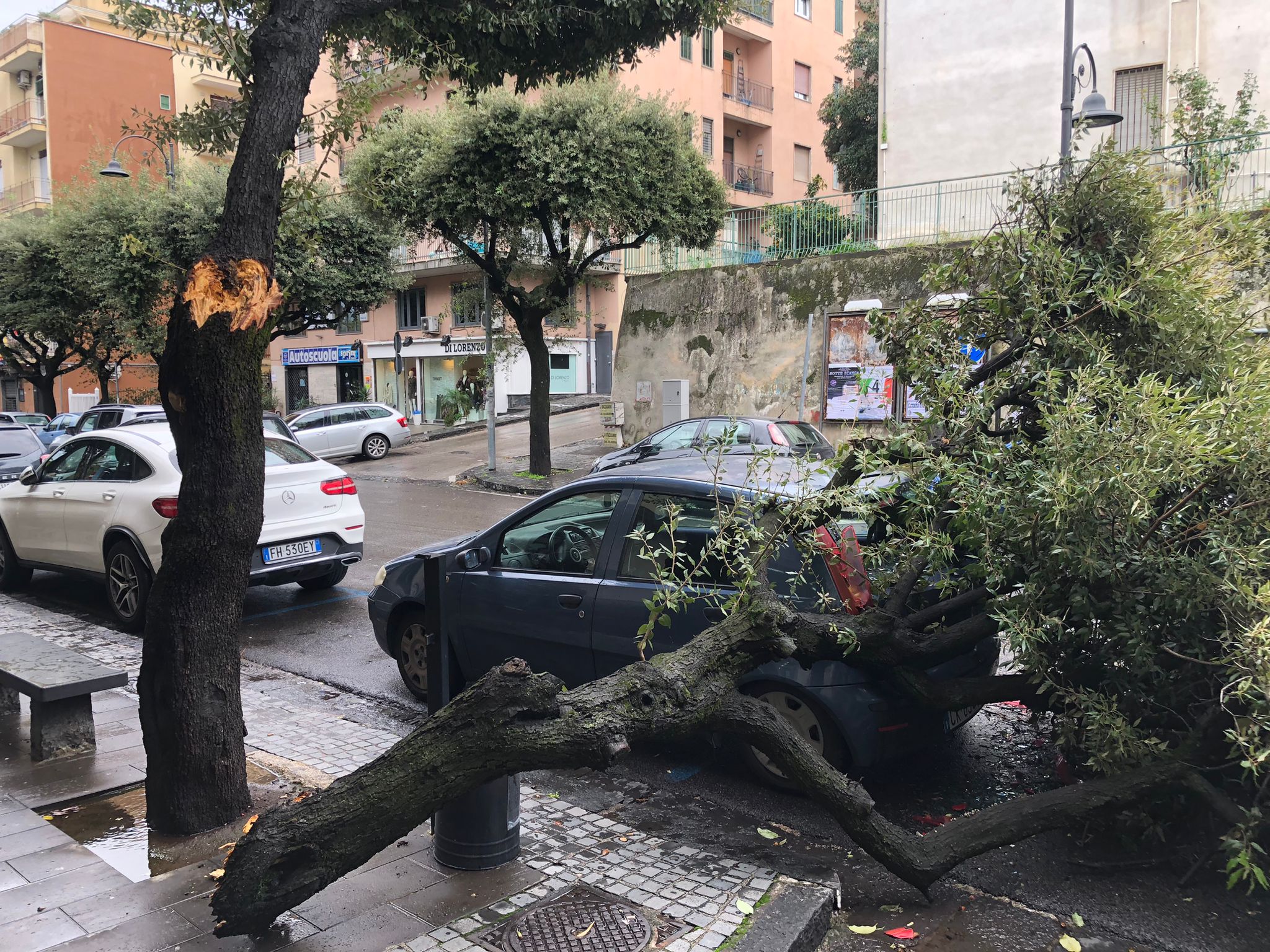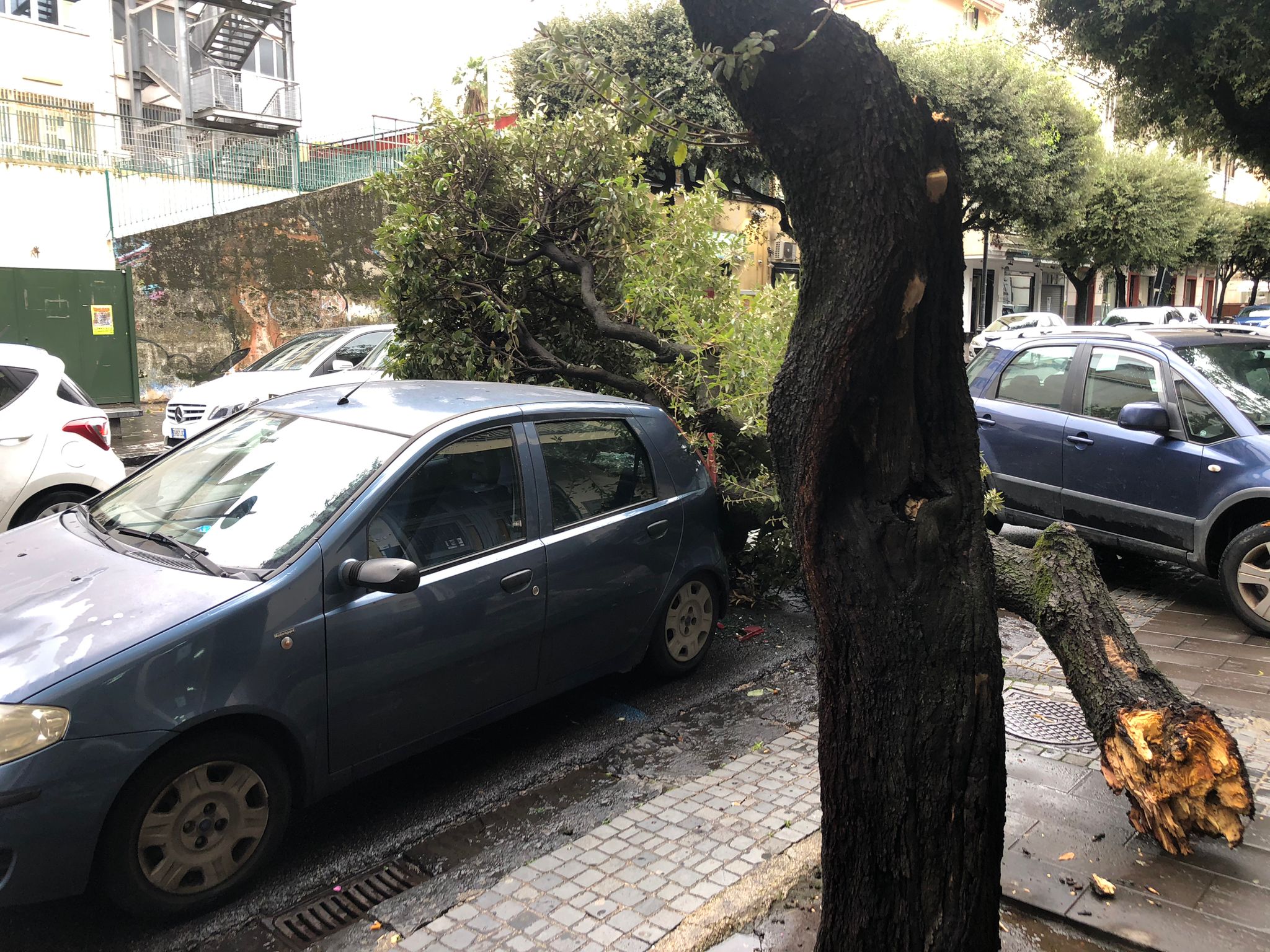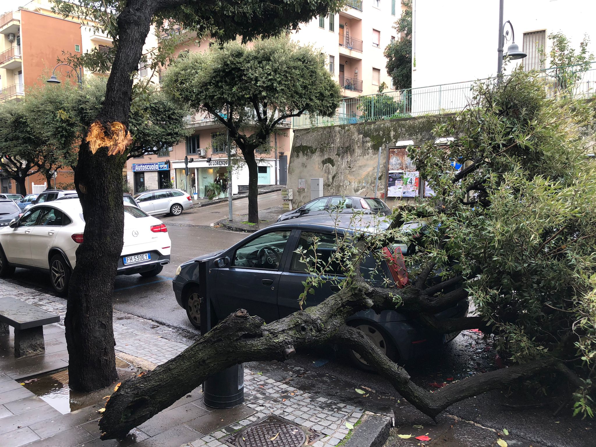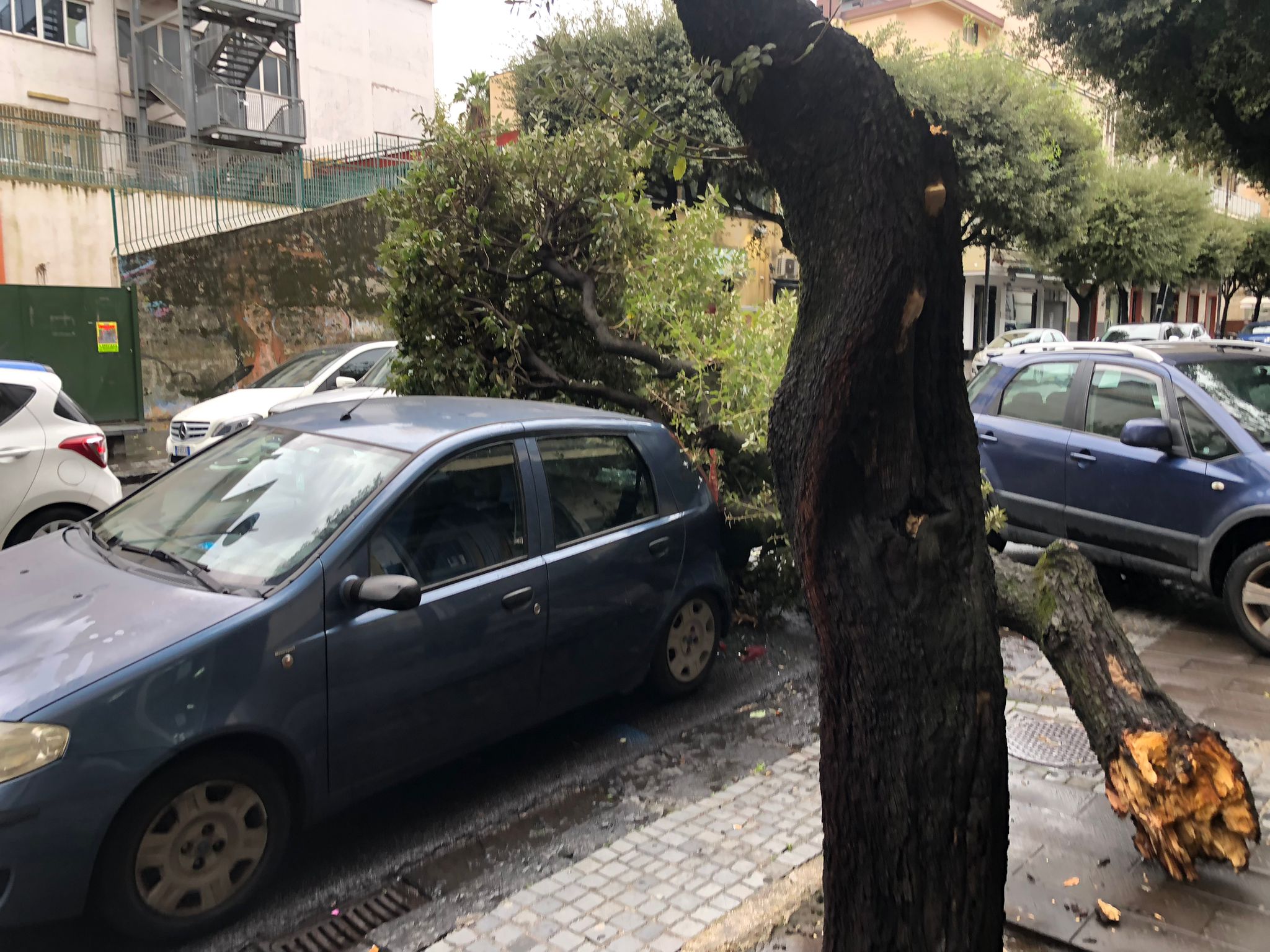 Non va meglio a Pomigliano d’Arco. A via Fratelli Bandiera un albero ha centrato una Peugeot grigia. In ambedue casi non si sono registrati feriti, per puro miracolo.