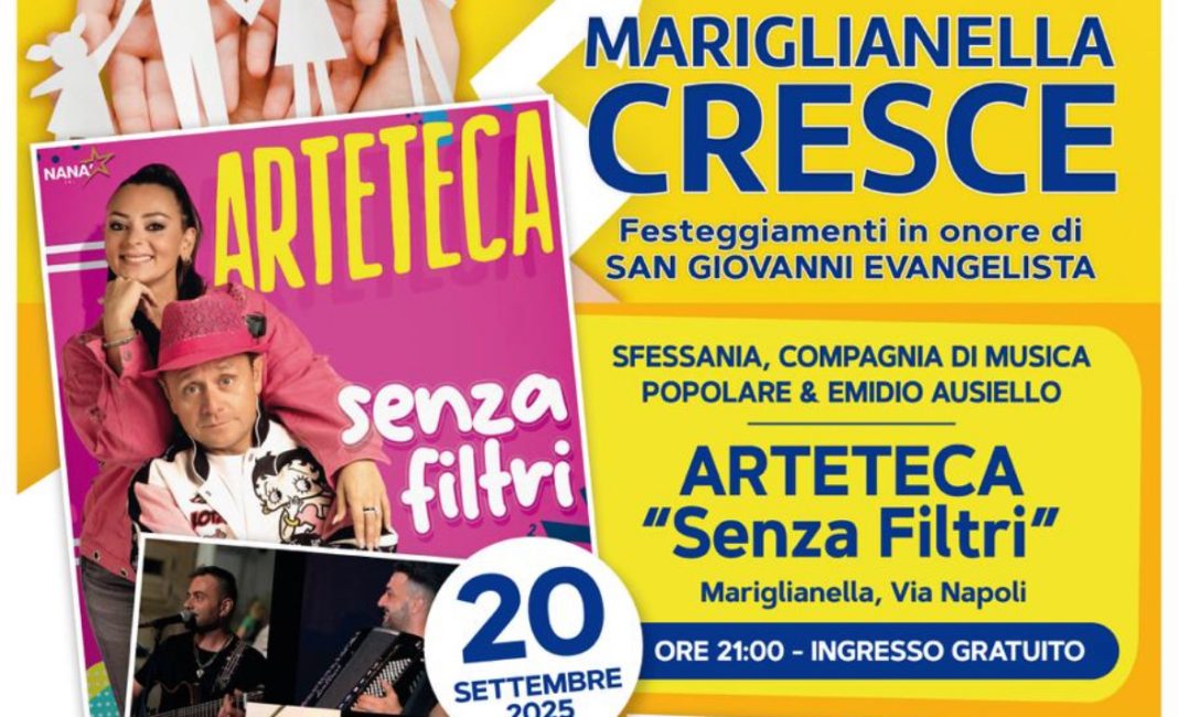 Dopo gli eventi di giugno organizzati in occasione della Festa di Maria SS. Della Sanità, il progetto “Mariglianella Cresce”, voluto dall’Amministrazione Comunale e inserito nel Cartellone degli Eventi Metropolitani 2024-2025 promosso dalla Città Metropolitana di Napoli, celebra un altro momento particolarmente sentito dalla comunità locale: la Festa in onore di San Giovanni Evangelista, patrono della cittadina. In occasione dei festeggiamenti saranno organizzati due appuntamenti all’insegna dello spettacolo e del divertimento: sabato 20 settembre sul palco allestito in Via Napoli si esibirà il noto duo comico “Arteteca”, con il loro live “Senza Filtri”. A precederli la tradizione musicale del gruppo “Sfessania, compagnia di musica popolare con la partecipazione di Emidio Ausiello”. Domenica 21 settembre a salire sul palco sarà, invece, Gianni Fiorellino, con il suo “Vai Tour”. Entrambi gli eventi inizieranno alle 21.00 e la partecipazione è gratuita. L’Amministrazione Comunale di Mariglianella, con il Sindaco Arcangelo Russo e l’Assessore allo Sport e Spettacolo Felice Porcaro, vuole così non solo onorare il Santo Patrono, ma anche offrire l’opportunità di rivitalizzare gli spazi urbani cittadini con momenti di animazione aperti alla partecipazione di tutti.