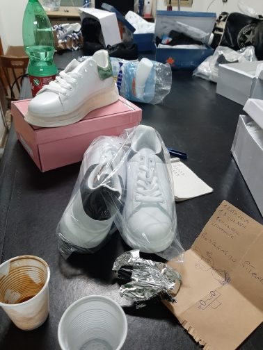 Al Corso Campano sono stati controllati dei locali siti al piano terra di alcune abitazioni scoprendo che in un vano era stato messo in piedi un calzaturificio abusivo. Gli operanti hanno deferito in stato di libertà due persone per gestione illecita dei rifiuti e per violazioni concernenti il testo unico dell’edilizia. Sono stati sequestrati i macchinari, altamente inquinanti, adibiti alla lavorazione e circa 500 paia di scarpe. Elevate sanzioni amministrative dell’importo complessivo di circa 6000 Euro. Le scarpe erano prive di qualsivoglia etichettatura utile a poter risalire anche ai materiali utilizzati per fabbricarle e per di più tutto il materiale utilizzato per la lavorazione, compresi gli scarti tessili, veniva smaltito illecitamente.