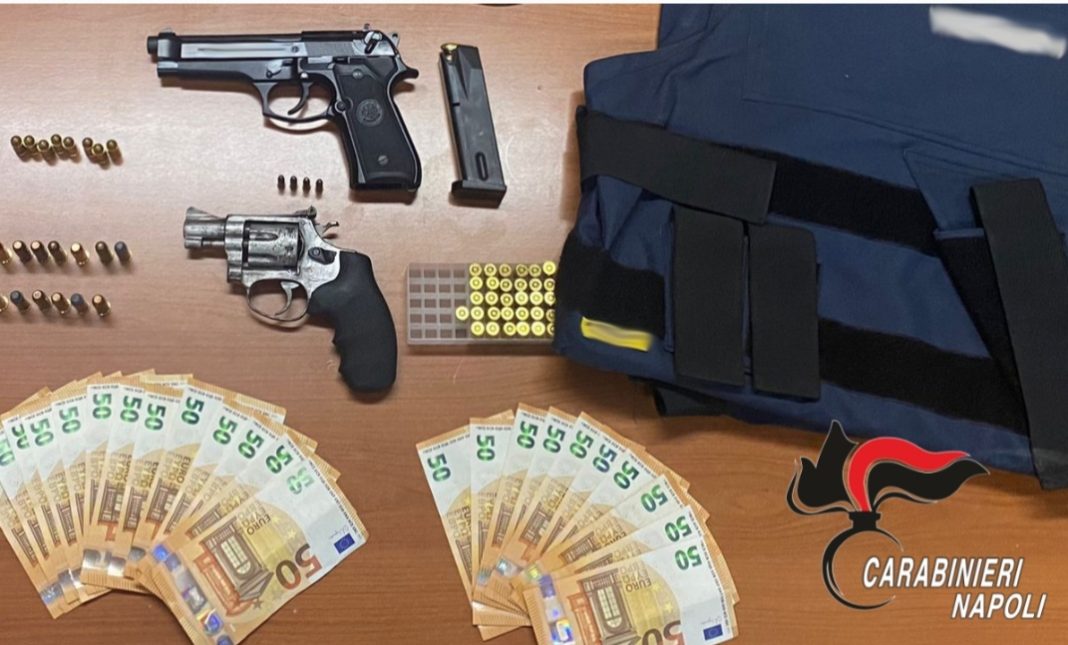 Nei 50 metri quadrati i carabinieri trovano e sequestrano una pistola calibro 9×21 carica di 10 colpi, un revolver calibro 22 con 3 cartucce al suo interno, un giubbotto antiproiettile e 40 proiettili di vario calibro. Nel box anche denaro contante per 1.650 euro e una Range Rover ultimo modello risultata rubata il giorno prima.