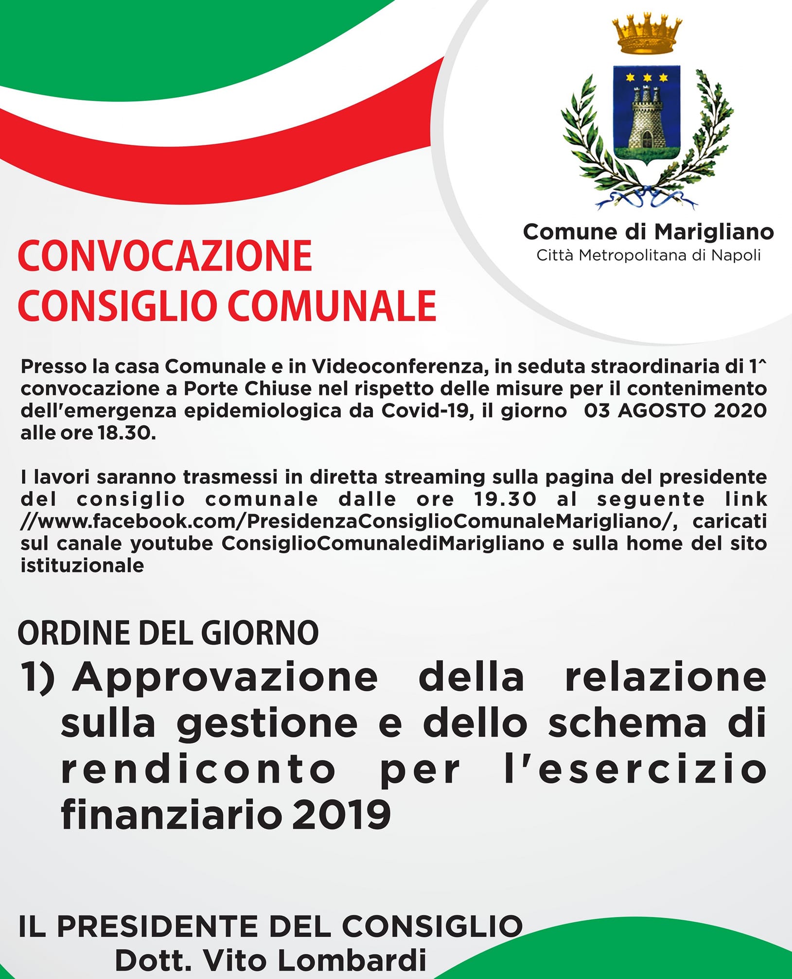 Un solo argomento all’ordine del giorno, dunque: il tanto atteso bilancio. Di certo, però, non mancheranno gli interventi dei vari consiglieri, riuniti per la prima volta dopo l’avvenimento che ha segnato in modo indelebile la parte finale di questa legislatura. Appuntamento alle ore 19:30 sulla pagina Facebook della presidenza del consiglio comunale, dalla quale si potrà seguire la diretta streaming: per via dell’emergenza pandemica è ancora vietata la partecipazione in presenza.