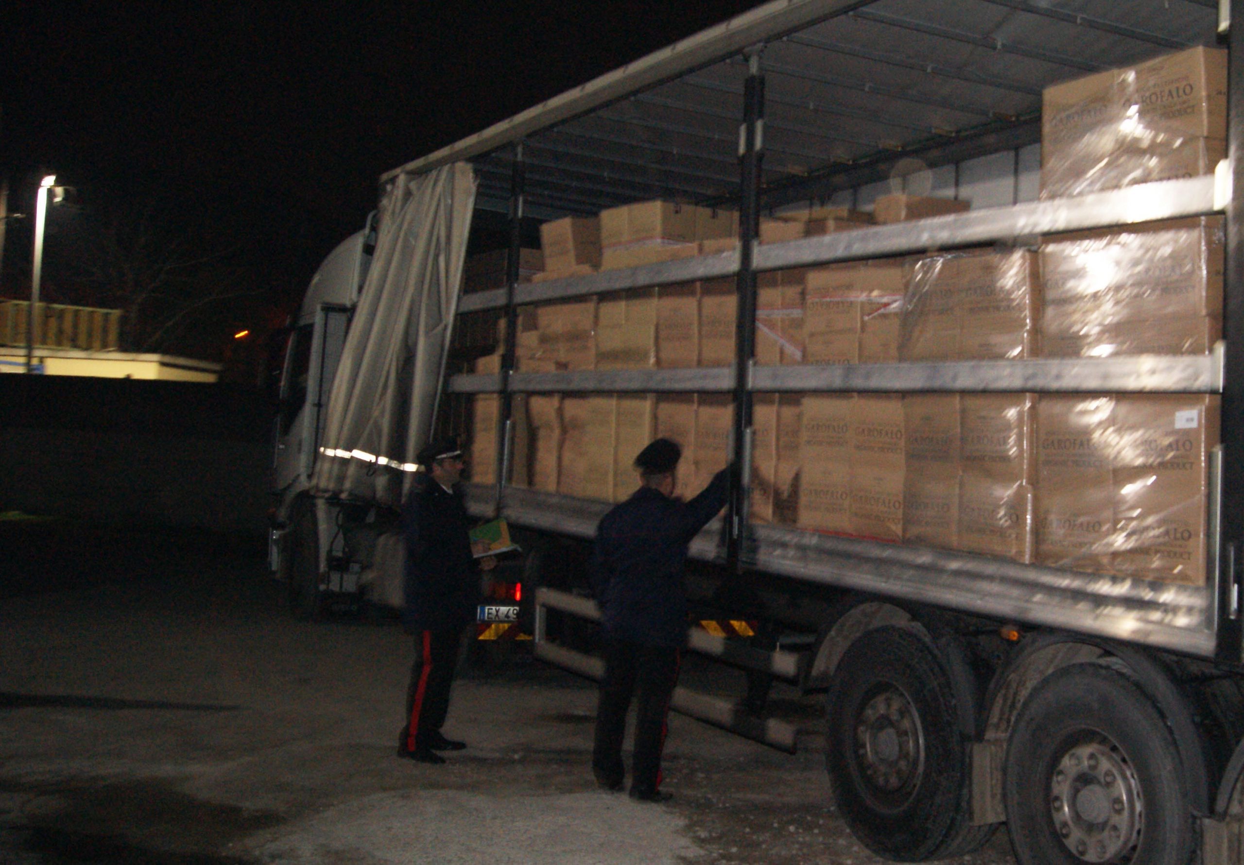 Per portar via tutti gli alimenti i carabinieri hanno dovuto usare ben 2 tir.