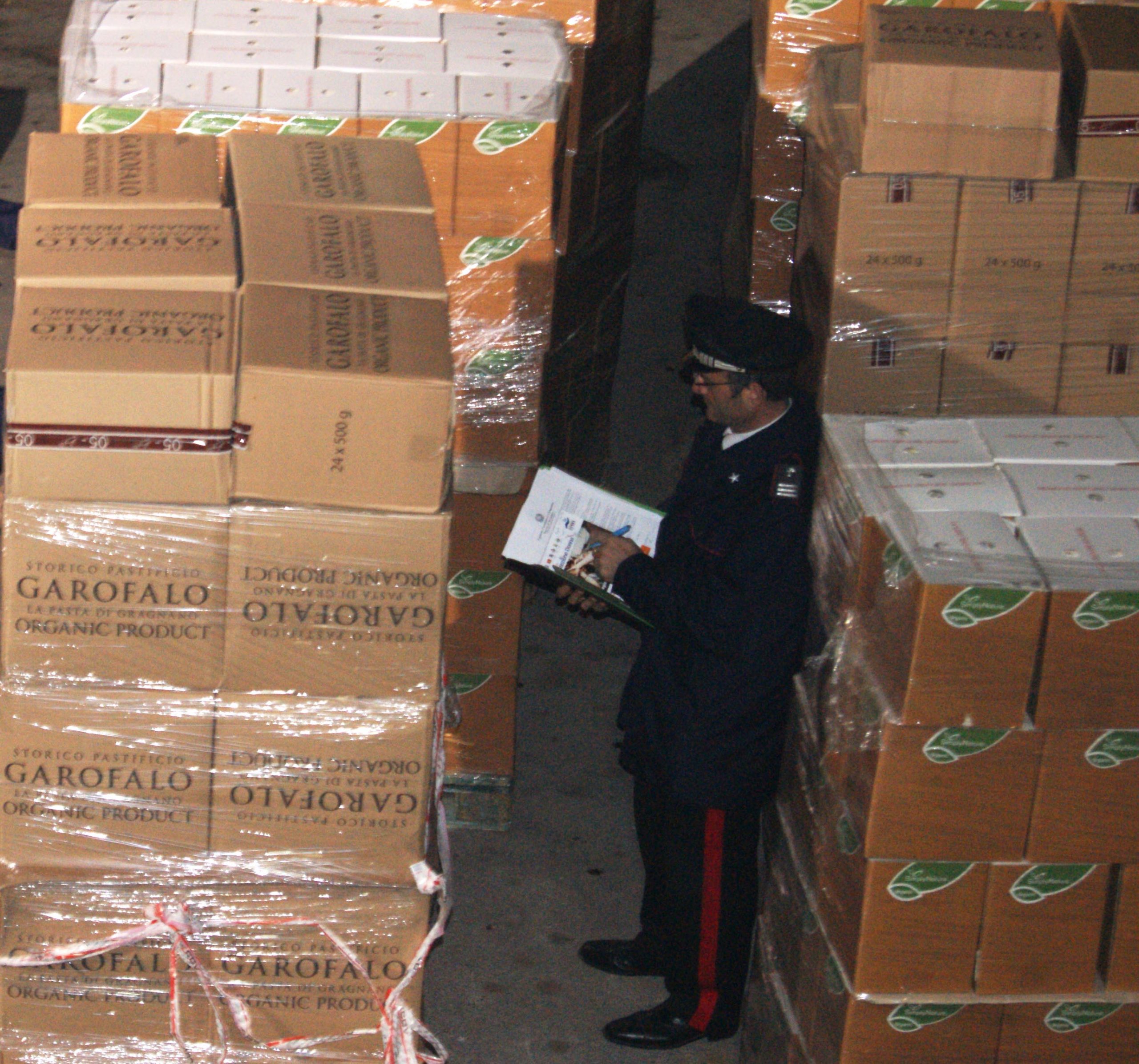 Nel deposito sono stati rinvenuti e sequestrati 174 quintali di pasta “Garofalo”, 84 quintali di pasta “De Matteis”, 4.200 bottiglie (da 0,5 litri l’una) di aceto balsamico “Colavita”.