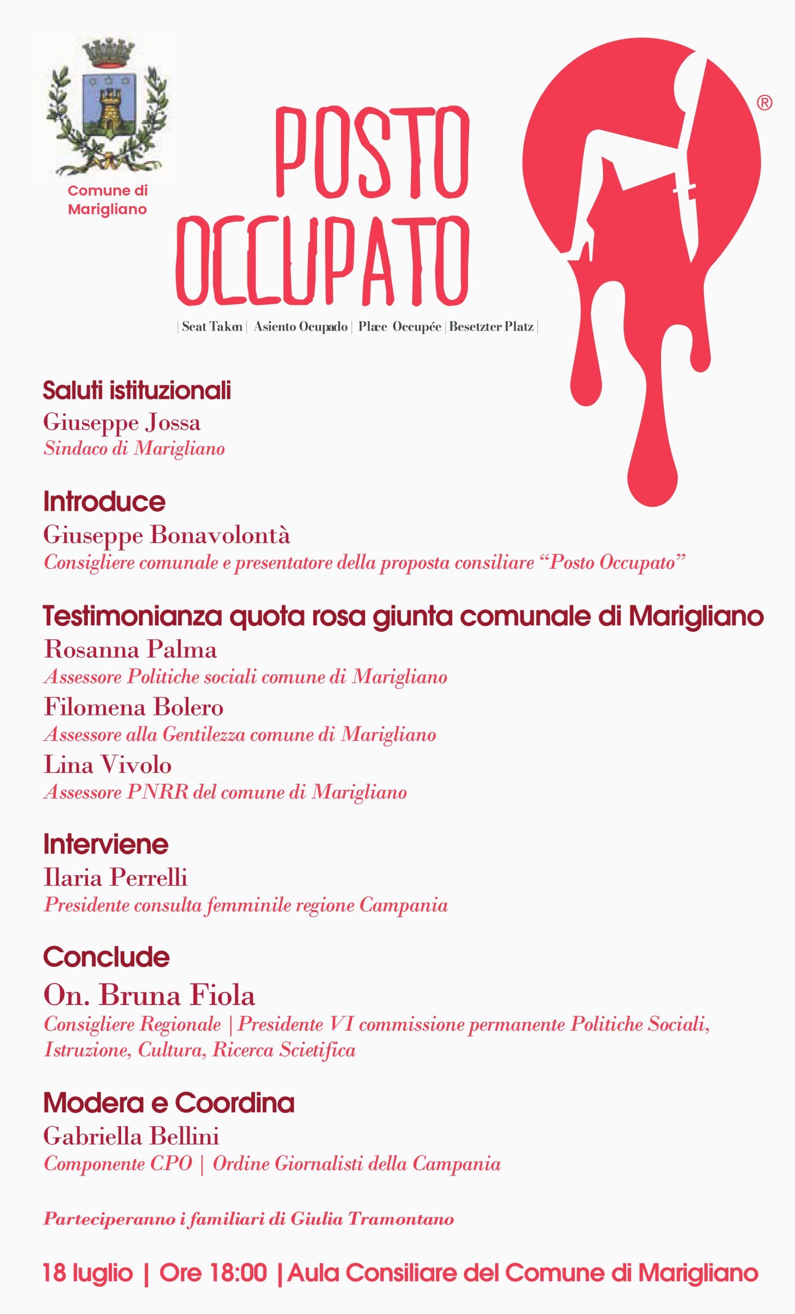 Marigliano. Si terrà martedì 18, presso l’aula consiliare della casa comunale, il convegno “Posto Occupato, promosso dal consigliere del Partito Democratico Giuseppe Bonavolontà e votato all’unanimità dal consiglio comunale lo scorso 7 luglio.