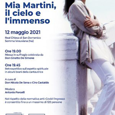 Mercoledì 12 alle 19.00, nella Real Chiesa di San Domenico, Universo di Mimì e la Parrocchia di San Michele Arcangelo, nella persona del parroco Don Nicola De Sena, vi invitano a una retrospettiva sulla tematica della spiritualità in alcuni testi dell’amata cantautrice calabrese che con Napoli e la sua provincia ha per anni intessuto un legame di amorosi sensi, ancora oggi tangibile nei ricordi della gente.