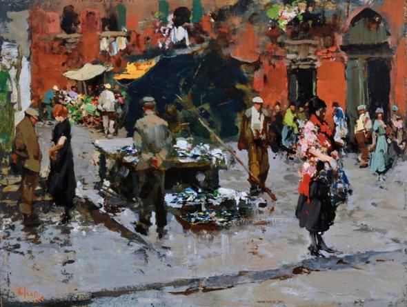 Disse una volta Vittorio Paliotti, che faceva parte della giuria del Premio di poesia dialettale “Salvatore Di Giacomo”, organizzato dal Comune di Ottaviano molti anni fa, che l’emarginazione culturale della lingua napoletana, voluta da settori potenti del mondo intellettuale “italiano”, era l’attacco più duro alla storia di Napoli e al ruolo della città. E nel 1999 Francesco D’Ascoli pubblicò “La Filosofia Popolare Napoletana”, un libro veramente prezioso. L’immagine di corredo è quella di un quadro di V. Irolli, “Mercato napoletano”.
