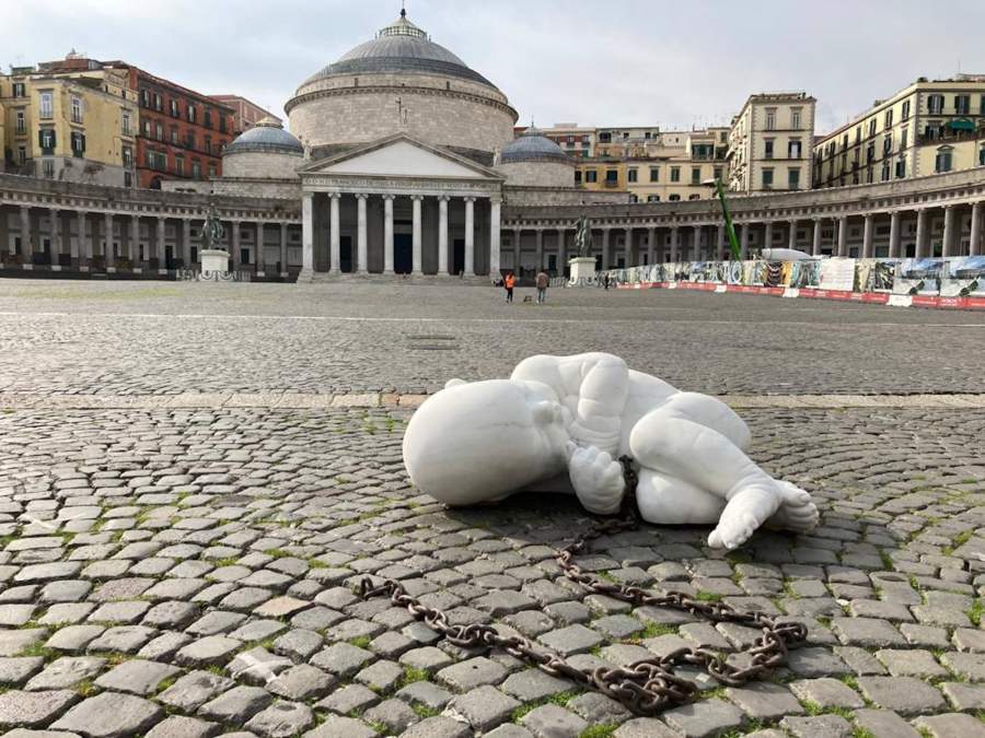 La statua che raffigura un bimbo rannicchiato e in sofferenza – il titolo ‘Look down’ è un gioco di parole sul lockdown e un invito a guardare in basso – è diventata bersaglio di cinque ragazzi, sembra minorenni.