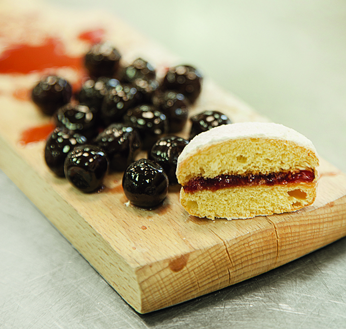 La variante Gennarino prevede la sola aggiunta di marmellata di ciliegie campane, un guizzo di rosso come chiaro richiamo al prodigio dello scioglimento del sangue del Santo Patrono.