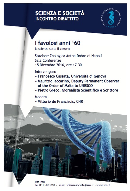 Erano “I Favolosi Anni ’60” quando la Biologia Molecolare ha avuto in Napoli una delle città principali per l’approfondimento, la conoscenza e le tecniche ad essa legate. Questo gran fiorire di nuove aree di ricerca, unito ai moderni tipi di contratti, che permettevano di ingaggiare giovani ricercatori, insieme alle cause che determinarono la nascita dell’attuale concetto di Biologia Molecolare, saranno oggetto dell’Incontro-Dibattito “I favolosi anni ’60 – La scienza sotto il Vesuvio”, che si è tenuto oggi presso la Sala Conferenze della Stazione Zoologica Anton Dohrn di Napoli, alle ore 17,30. L’evento, promosso dal Comitato Scienza e Società, si colloca nell’ambito delle attività di divulgazione scientifica riprese a partire dallo scorso novembre.