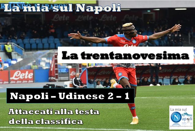Il Napoli ospita l’Udinese e sembra essere il Napoli arraffone che perde le opportunità, e infatti va sotto nel primo tempo, che gol di Deulofeu, subisce, rischia, poi sembra riprendersi, e lo fa nella ripresa, ribalta il risultato. Il risolutore è Osimhen, che furia, prima di testa su schema da calcio d’angolo e poi finalizza una combinazione degli esterni destri Politano e Di Lorenzo. Vittoria meritata, e restiamo attaccati alla testa della classifica.