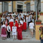 E così è stato. Sullo sfondo di un meraviglioso scenario, il golfo di Napoli, (bellissimo striscione stilizzato), in uno sfavillio di colori e sulle note di un mix di canzoni napoletane, fanno il loro ingresso, in una parata incantevole, gli alunni dell’Infanzia. Subito dopo le classi quinte del capoluogo intonano e ballano ” Gente, magnifica gente ” e ” ‘A città ‘e Pulicinella”. Tornano di nuovo in scena gli alunni dell’ Infanzia con una coreografia a dir poco esilarante , prima con la canzone del Babà, poi con i ritmi della tarantella, infine, in una scena emozionante, con le note meravigliose di “Napul’ è..” di Pino Daniele. Gli alunni delle quinte di Carbonara e Vico si esibiscono nelle vesti degli scugnizzi di “Persone,Persone”, la canzone di Sal Da Vinci e concludono la loro performance con ” Don Rafaè “, nella versione di Clementino. È il turno degli alunni della scuola secondaria di primo grado che si esibiscono in un breve musical tratto dal film “Totò, sapore e la magica storia della pizza”. Lo scenario è piazza Mercato , con il suo pullulare di gente e bancarelle. Protagonisti Totò e Confianse, Pulcinella, Vesuvia e le voci , i suoni ,i rumori, gli umori che rendono Napoli una città unica. L’ atmosfera è magica, il pubblico è completamente preso, scrosci di applausi accompagnano l’esibizione.