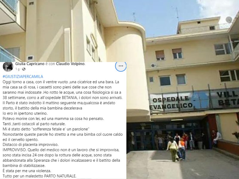 Questa è la storia di Giulia Capricano, la mamma che ha perso la figlia appena nata e, queste sono le sue parole diventate virali con un post su Facebook. La piccola Camilla è morta nell’ospedale villa Betania di Napoli dopo il parto cesareo deciso, secondo la donna, troppo tardi.