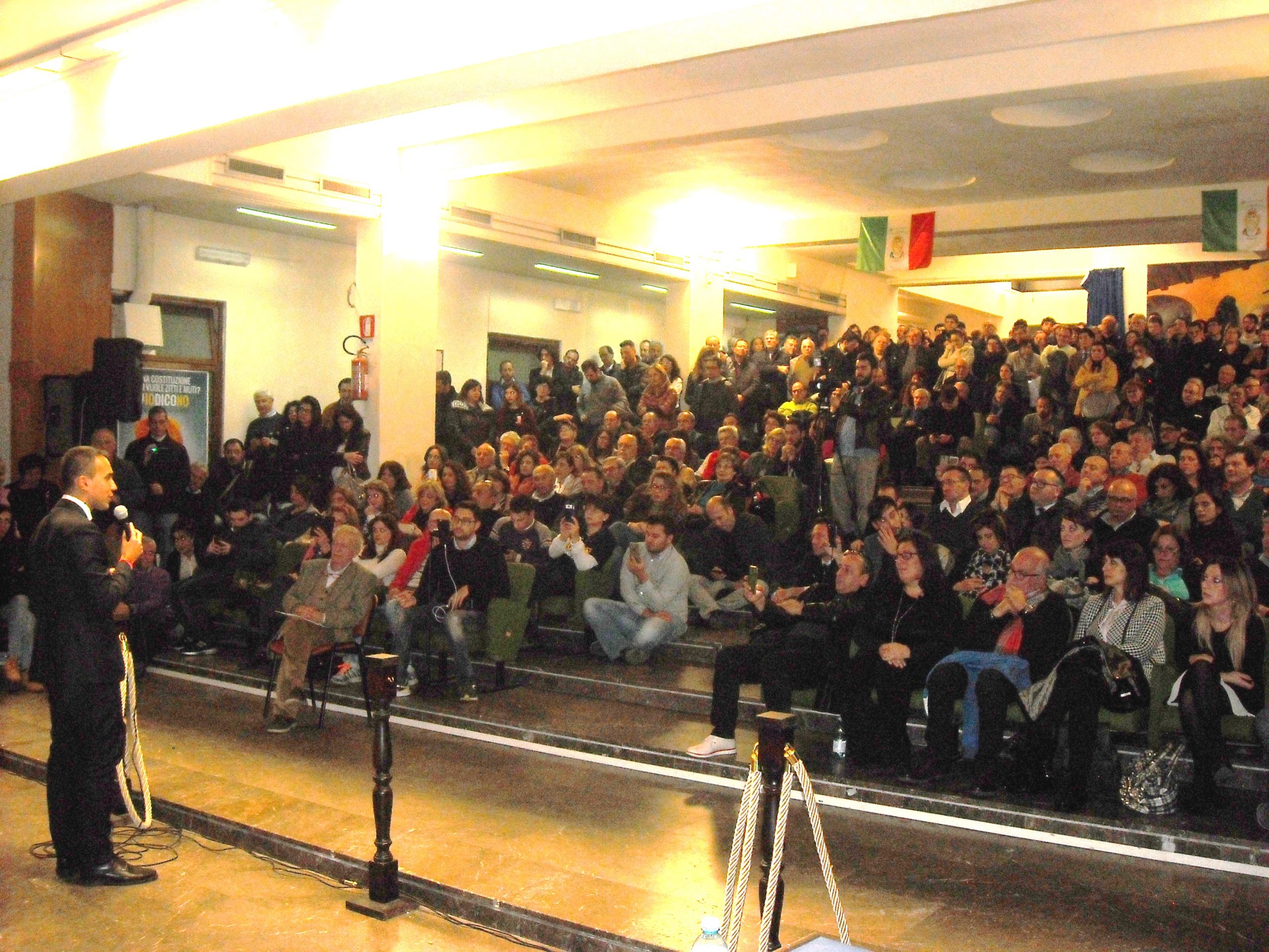 L’assemblea di ieri sera nell’aula consiliare di Pomigliano, puntata sul no al referendum costituzionale del prossimo 4 dicembre, ha dato tutta la misura del dato di fatto che la consultazione sulla riforma voluta dal governo sarà un voto a favore o contro il presidente del Consiglio Matteo Renzi. E questo non solo perché Luigi Di Maio nella sua Pomigliano è stato accolto da un vero e proprio bagno di folla. Il consenso di centinaia e centinaia di persone che si sono strette attorno al loro leader proprio nella sua terra natale potrebbe risultare infatti fuorviante sotto questo aspetto dell’analisi sulla riforma. In effetti a far comprendere che quello del referendum sarà un voto politico state le stesse parole di Luigi Di Maio, pronunciate davanti ad almeno cinquecento persone che hanno resa stracolma l’aula municipale. Il leader pentastellato, dopo aver spiegato con una serie di ragionamenti molto chiari e lucidi l’assoluta pericolosità della riforma voluta da Renzi ha puntato il suo discorso sugli insuccessi del governo, sia in campo economico che sociale. La spiegazione della palese discrasia tra le parole pronunciate in televisione dal capo del governo e le reali condizioni di sostanziale povertà del Paese, sempre più dominato dalle mafie, ha strappato gli applausi della folla che ha accolto Di Maio. Insomma, è stato Renzi in un primo momento a dire che il voto referendario sarebbe stato un voto pro o contro lui ma anche se il presidente del Consiglio ha fatto mea culpa su questa interpretazione dell’evento questo referendum è inevitabilmente destinato a essere una sorta di elezione politica anticipata. Fior di giuristi del resto si oppongono al disegno del Matteo nazionale. Ieri nell’aula del consiglio comunale di Pomigliano era atteso anche il presidente onorario della Suprema Corte di Cassazione Ferdinando Imposimato. Ma l’alto magistrato ha dovuto dare forfait per un malanno che lo ha colto d’improvviso. A ogni modo Dario De Falco, leader cittadino del Movimento Cinque Stelle, ha letto la lettera che Imposimato ha scritto allo scopo di spiegare i pericoli di una riforma volutamente pasticciata perché finalizzata alla realizzazione di un disegno autoritario e antidemocratico”.