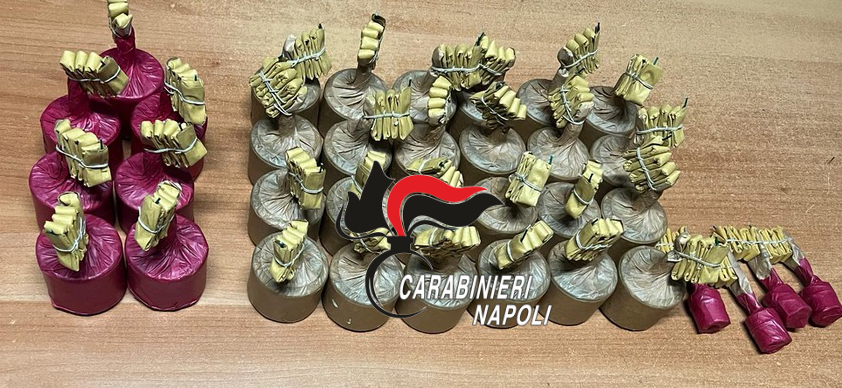 Perquisiti, i Carabinieri hanno rinvenuto e sequestrato 6 batterie da 100 colpi l’una, 4 rendini artigianali e 31 ordigni esplosivi. Le 31 “cipolle” avevano un peso complessivo di 3 chili e 400 grammi e sono dovuti intervenire gli artificieri del comando provinciale di Napoli.