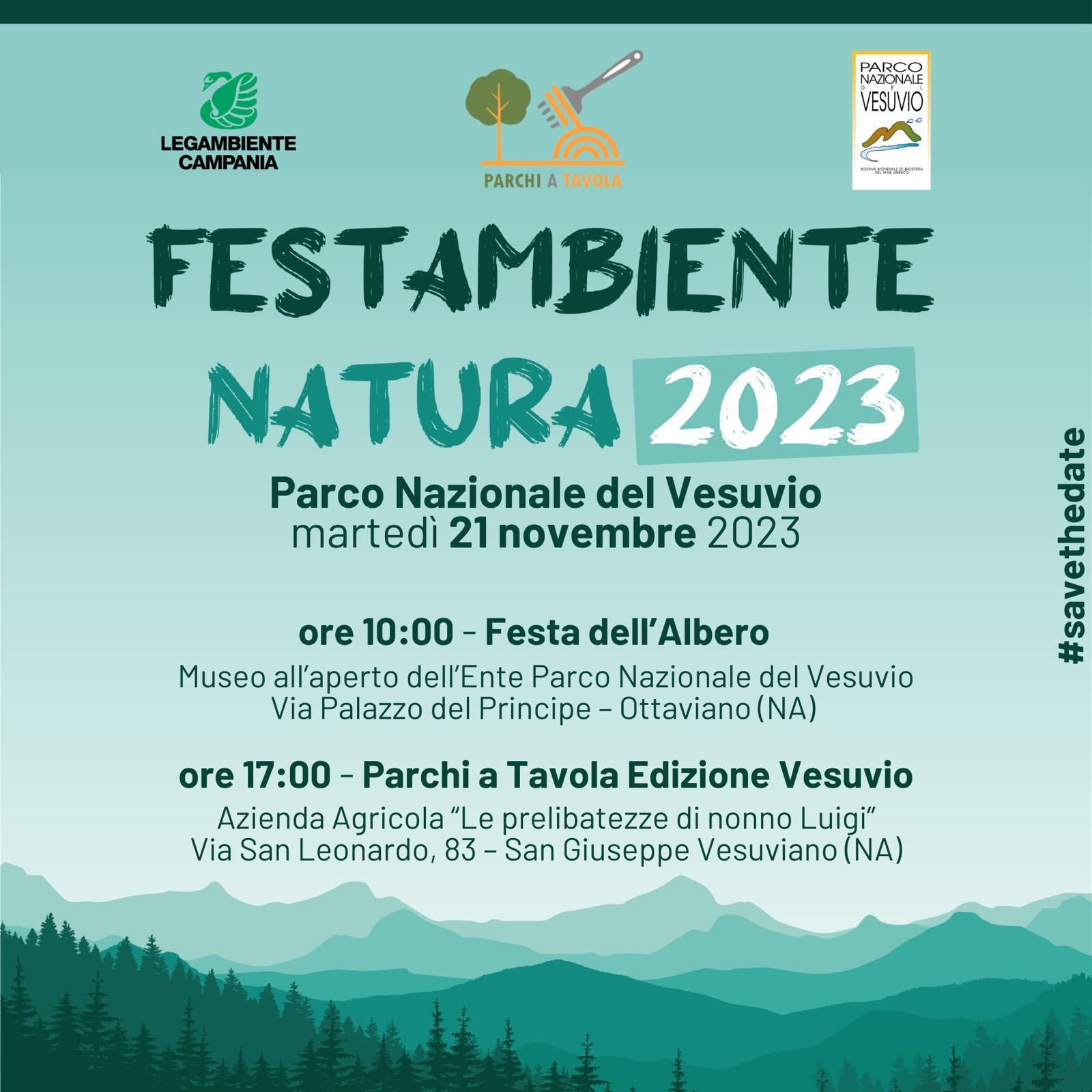 Legambiente Campania, Legambiente Somma Vesuviana, con il Patrocinio dell’Ente Parco Nazionale del Vesuvio, ha organizzato martedì 21 Novembre FestAmbiente Natura e Parchi in Tavola- II Edizione Parco del Vesuvio. L’Evento si terrà presso l’Azienda Agricola “Le Prelibatezze di nonno Luigi” in via San Leonardo, 83 – San Giuseppe Vesuviano.
