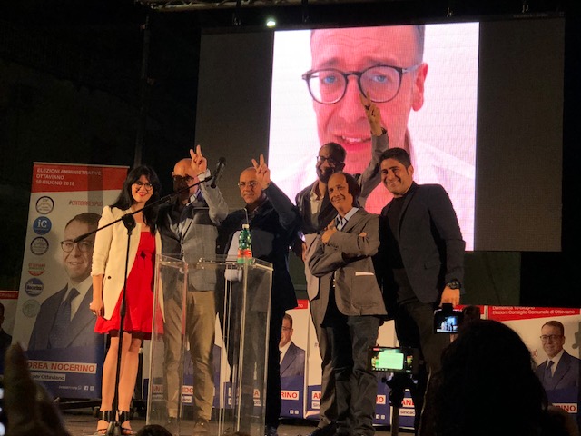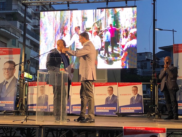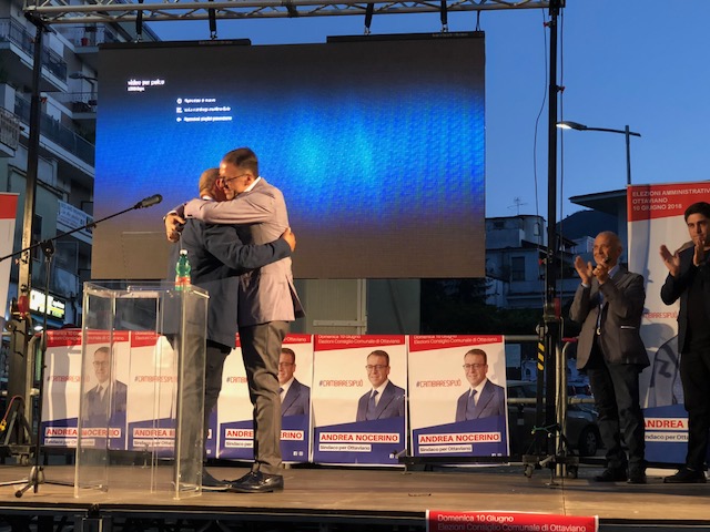Il candidato sindaco ha letto il suo intervento, accolto dagli applausi della piazza. «Alla candidatura – ha esordito Andrea Nocerino – è stato il dovere morale di impegnarmi, quello di assicurare ai nostri figli un paese vivibile con le infrastrutture necessarie. Siamo ben consci che le entrate comunali non consentono opere faraoniche, il nostro programma è fatto da dodici punti di possibile attuazione. Questa campagna elettorale è stata un bagno di democrazia, di partecipazione, di felicità e sono contento di aver visto tanti giovani riavvicinarsi alla politica, scoprire l’entusiasmo e l’energia che si prova nel mettersi in gioco. Puntare sui giovani è la vera svolta. Il mio, il nostro, impegno sarà la centralità del cittadino, la ripresa economica, il miglioramento della qualità della vita. La politica deve essere strategica, lungimirante, con pianificazione di interventi: tutto questo è mancato negli ultimi anni e Ottaviano necessita ora di un cambio di passo, di mettere in campo tutte le energie per aumentare l’occupazione giovanile, per far sì che gli industriali vesuviani scelgano il nostro territorio per investire, occorre restituire dignità alla città a fronte di scelte politiche errate. Siamo qui per cambiare Ottaviano in meglio, con lungimiranza, rendendo i cittadini protagonisti». Ha poi precisato, il candidato sindaco: «Il tempo degli altri visti come nemici deve finire subito, ma ad Ottaviano è tempo che le cose cambino, che si inizi a respirare il futuro, quello che da tempo non si respira. Noi abbiamo messo in secondo piano le ideologie per un fine alto, il bene comune. Se qualcuno si decidesse finalmente a cambiare idea e pensasse ad ascoltare le persone, invece di perdere tempo a screditare gli altri, farebbe il suo dovere. Il nostro programma è basato sulle esigenze dei cittadini, non faremo alcun “patto con il diavolo”, tentando di costruire una Ottaviano a misura d’uomo. A chi lamenta la mia assenza dalle piazze, a chi chiede dov’ero finora, rispondo con i numeri: duecento interventi in consiglio comunale, milleduecento emendamenti, cinquecento presenze in commissione comunale con gettoni di presenza devoluti sempre per il sociale». Ha chiuso Nocerino, con una frecciata all’indirizzo del suo avversario, il sindaco Luca Capasso: «Parlano di continuità, invece emergono fin d’ora velleità di candidature regionali che porterebbero inevitabilmente a dimissioni anticipate. Noi porteremo energia, passione, competenza, serenità, siamo ciò di cui ha bisogno Ottaviano».